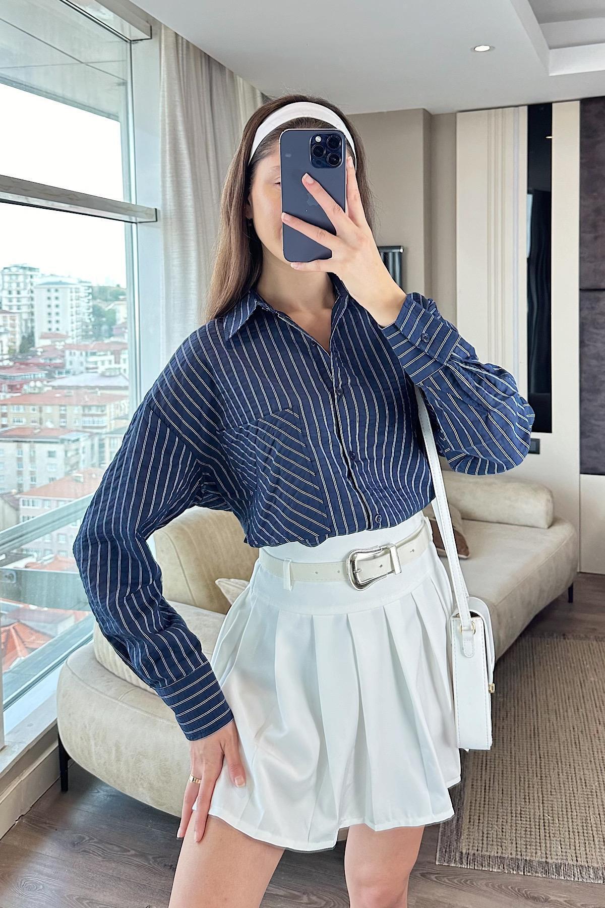 Kadın Çizgili Over Fit kesim Gömlek Kadın Çizgili Over Fit kesim Gömlek Strixwomen 2XL