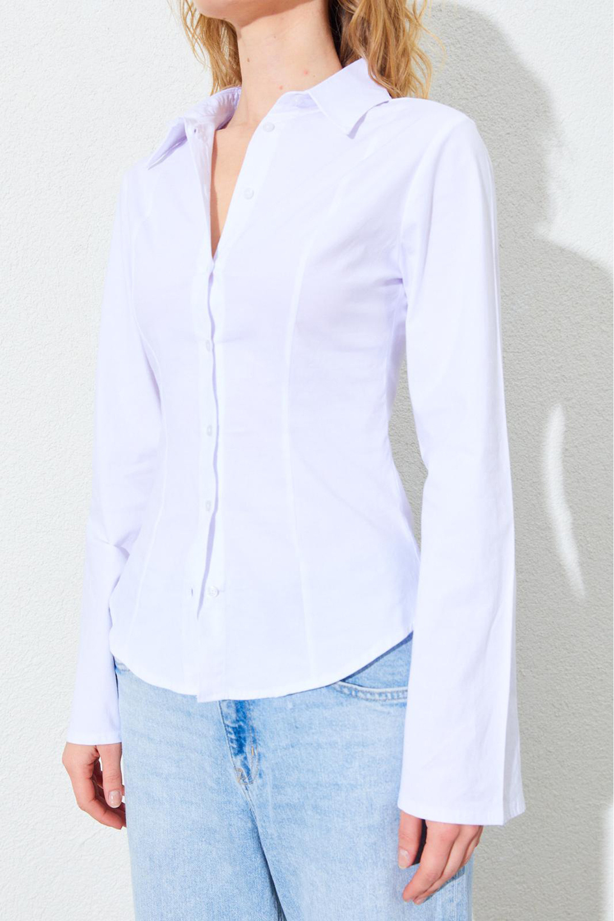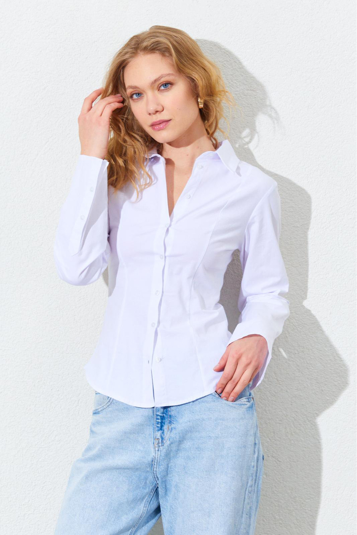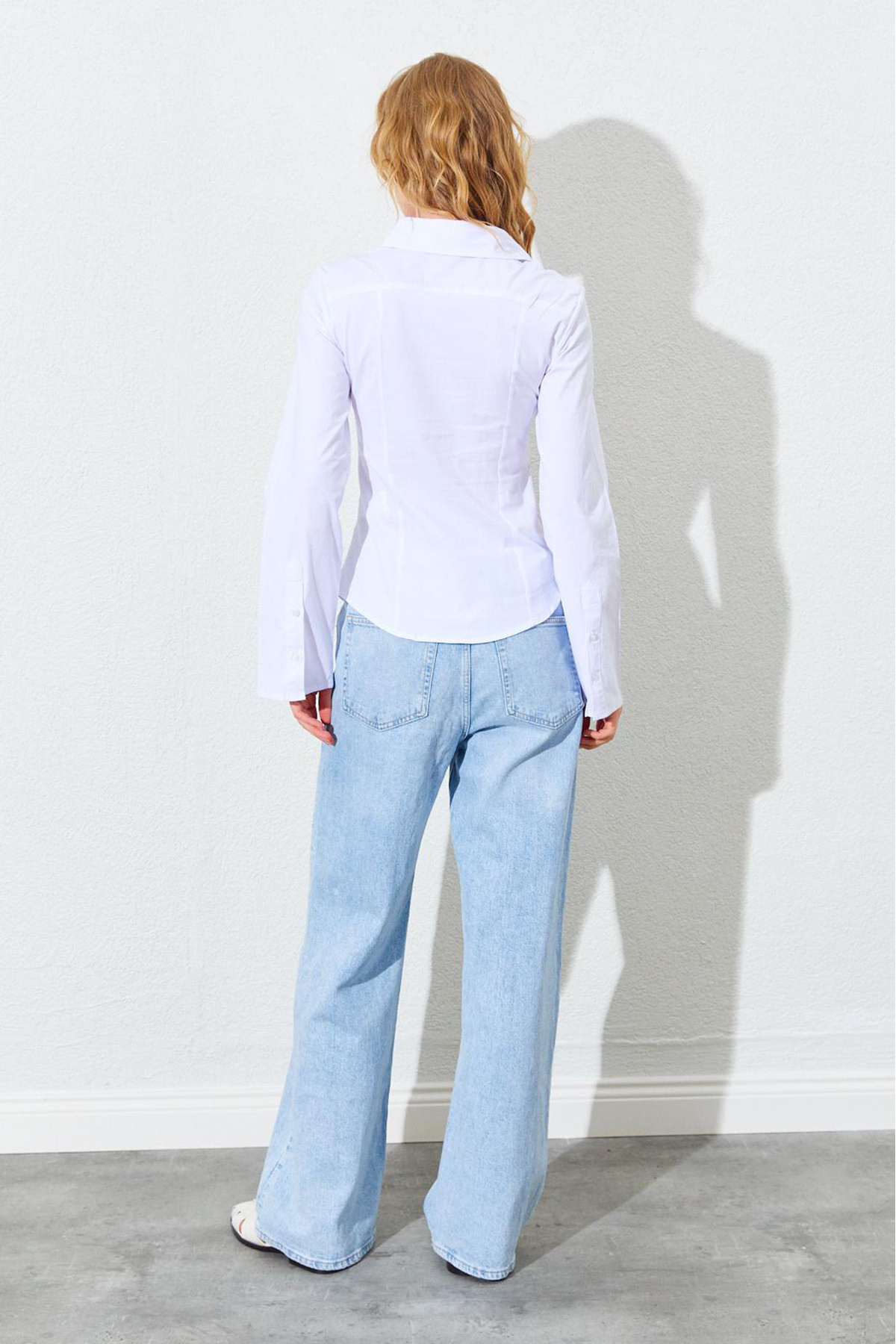 Bel Oturtmalı İspanyol Kol Lİkralı Pamuk Gömlek - Beyaz | MKS161463-01 Bel Oturtmalı İspanyol Kol Lİkralı Pamuk Gömlek - Beyaz | MKS161463-01 XL