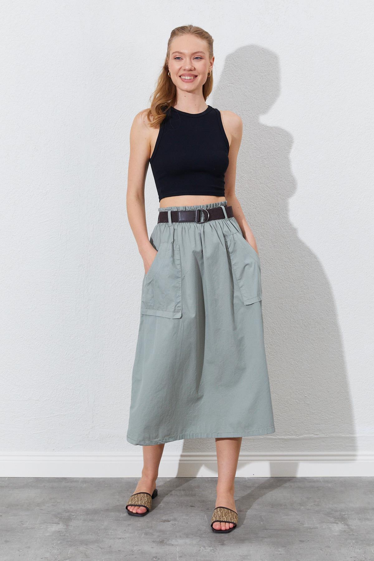 Önden düğmeli Cepli Plikaşe Keten Etek Önden düğmeli Cepli Plikaşe Keten Etek 00376 42