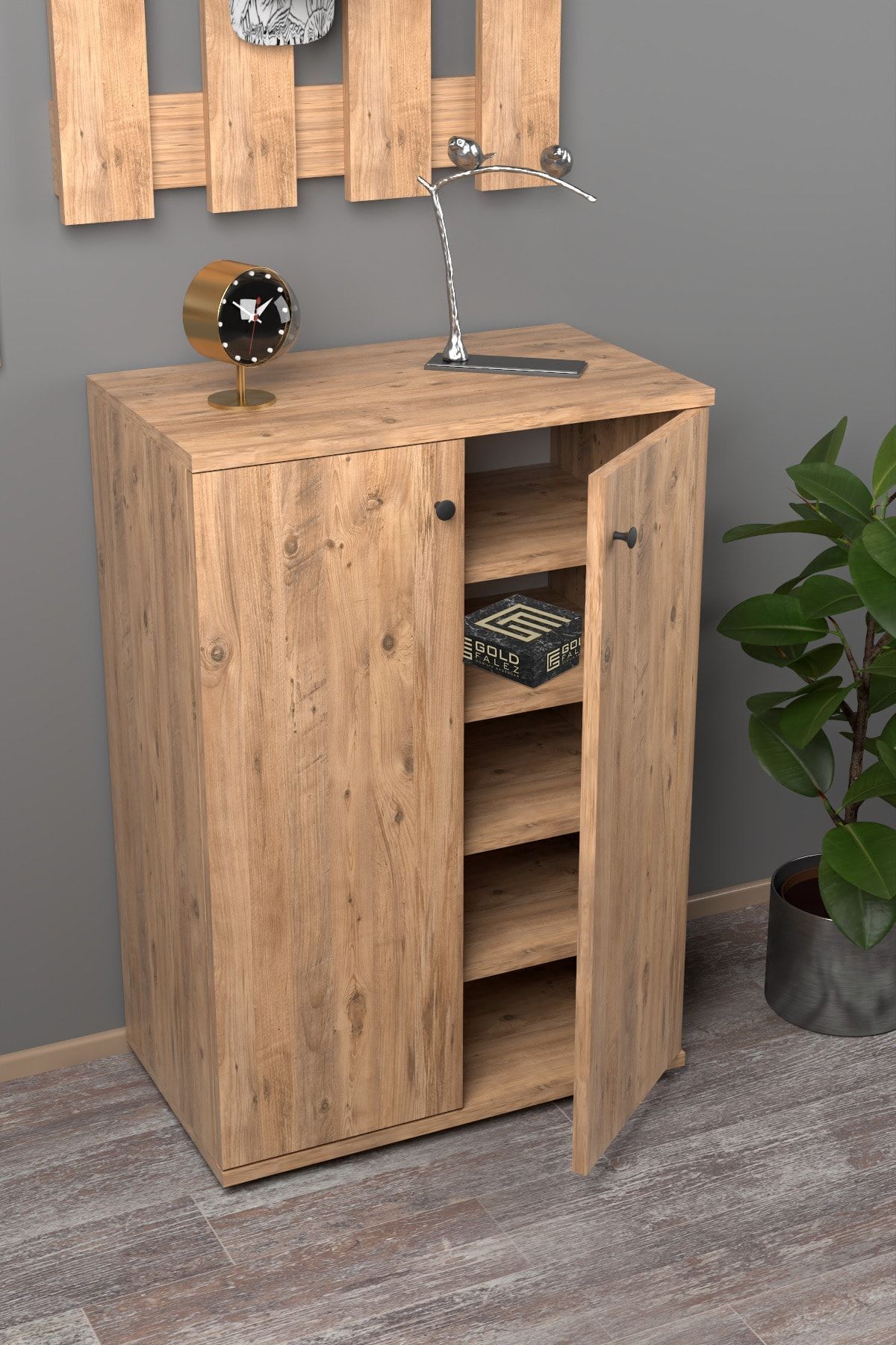 Ayakkabılık Çok Amaçlı Ayakkabı Dolabı 5 Raflı 2 Kapaklı Ceviz Ayakkabılık Çok Amaçlı Ayakkabı Dolabı 5 Raflı 2 Kapaklı Ceviz P824S5750 تک سایز