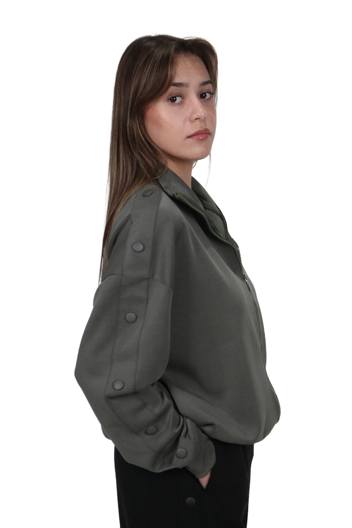 Kadın Modal Kumaş Dik Yaka Rahat Kalıp Haki Ceket Hırka Kadın Modal Kumaş Dik Yaka Rahat Kalıp Haki Ceket Hırka 14702 XL