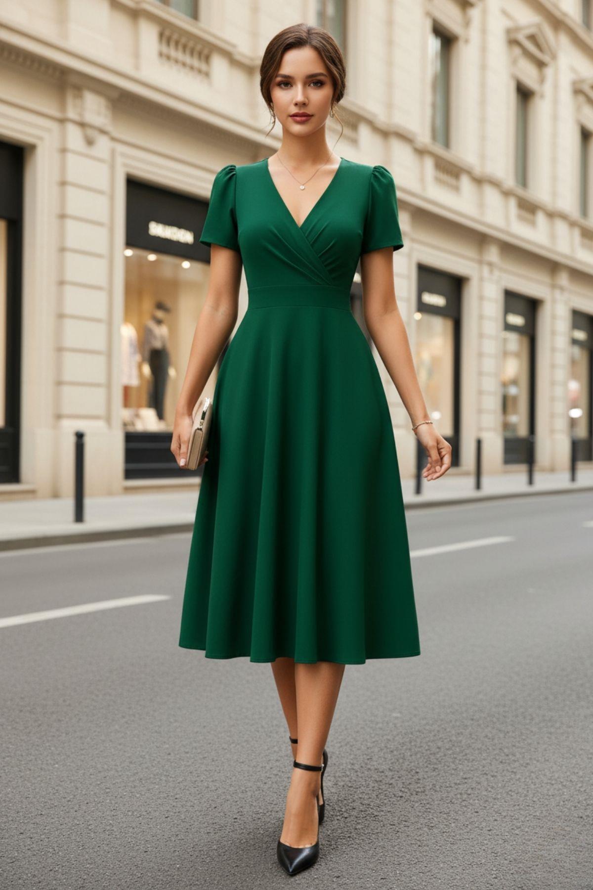 Kruvaze Yaka Kısa Kollu Midi Krep Elbise - Mor Kruvaze Yaka Kısa Kollu Midi Krep Elbise - Mor EL583239 2XL