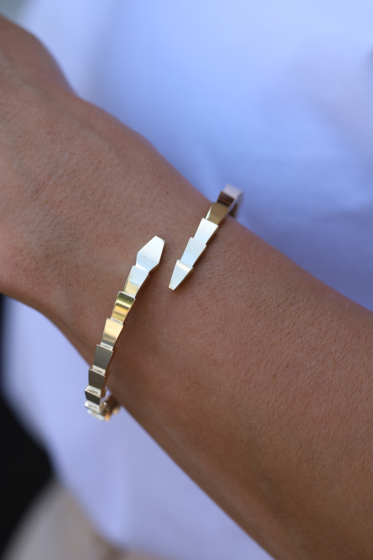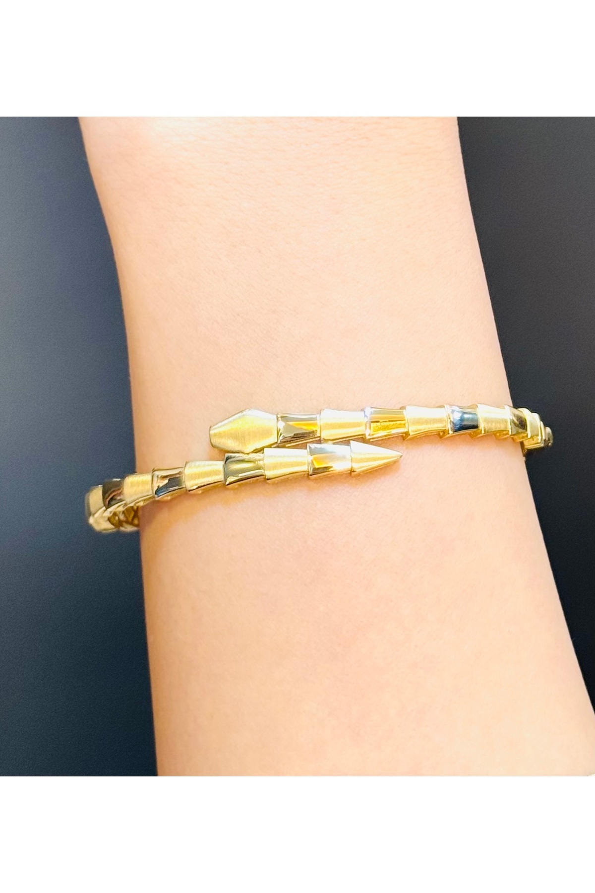 14 Ayar Altın Taşlı Yılan Desenli Kelepçe 14 Ayar Altın Taşlı Yılan Desenli Kelepçe KLP44201 تک سایز