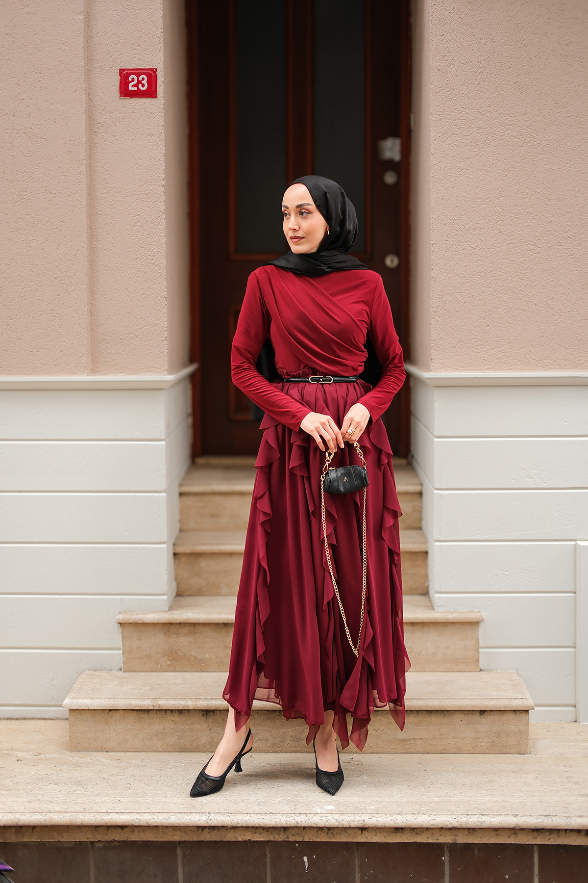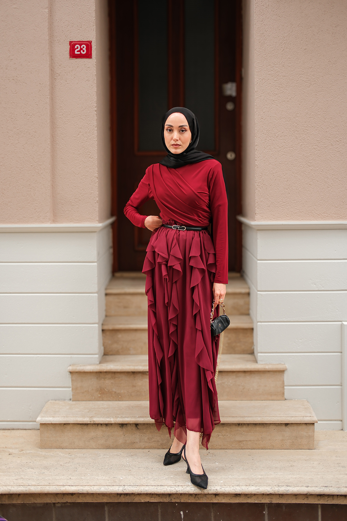 Kadın Anneliesse Şifon Fırfırlı Takım Bordo Kadın Anneliesse Şifon Fırfırlı Takım Bordo 273-6632 L/XL