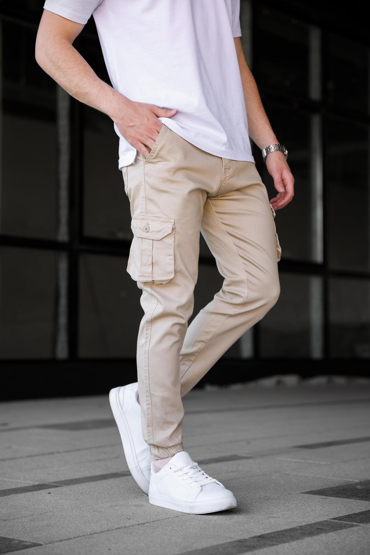Kargo Cepli Gabardin Kumaş Bej Renk Erkek Pantolon Kargo Cepli Gabardin Kumaş Bej Renk Erkek Pantolon PBD3138 38