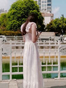 Leya Askısı Fırfırlı Desenli Şifon Elbise Toz Pembe Leya Askısı Fırfırlı Desenli Şifon Elbise Toz Pembe MSET1025 L
