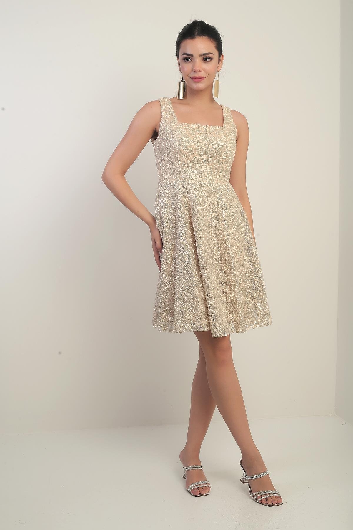 Kadın Kalın Askılı Astarlı Sim Flok Baskılı Kısa Kloş Elbise Kadın Kalın Askılı Astarlı Sim Flok Baskılı Kısa Kloş Elbise LPS-25Y0130004 XL