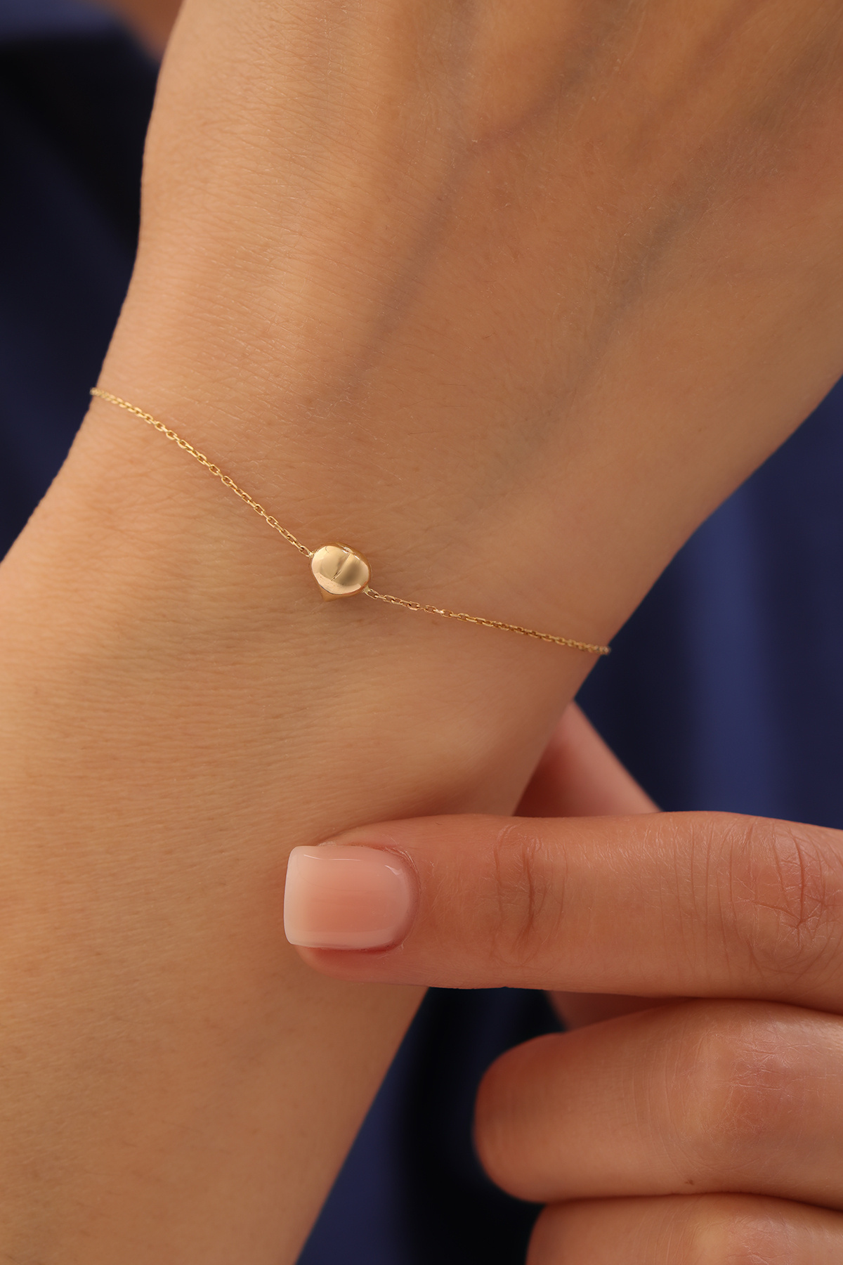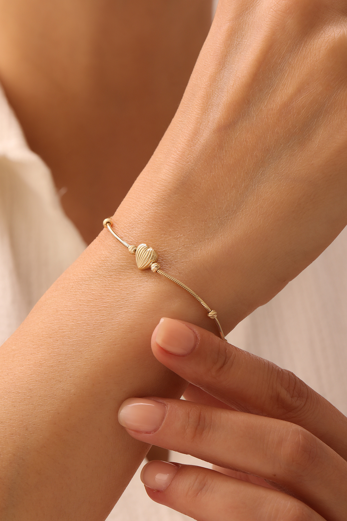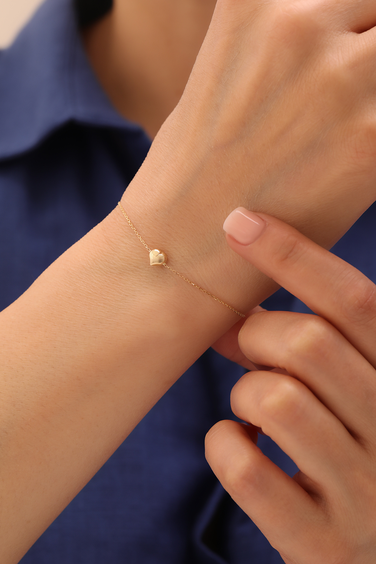 14 Ayar Altın Kalp Bileklik 14 Ayar Altın Kalp Bileklik YKKLY00001387 19 cm