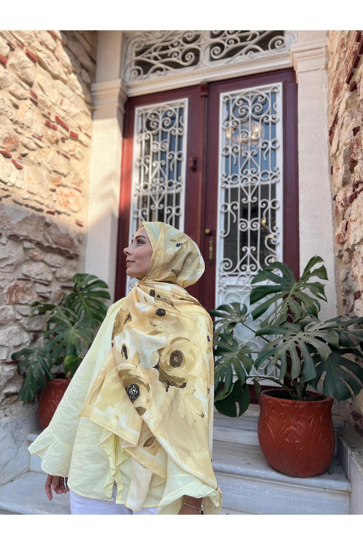 Bahar Serisi Çiçekli Desen Pamuklu Dijital Soft Şal - Sarı Bahar Serisi Çiçekli Desen Pamuklu Dijital Soft Şal - Sarı 75 x 190