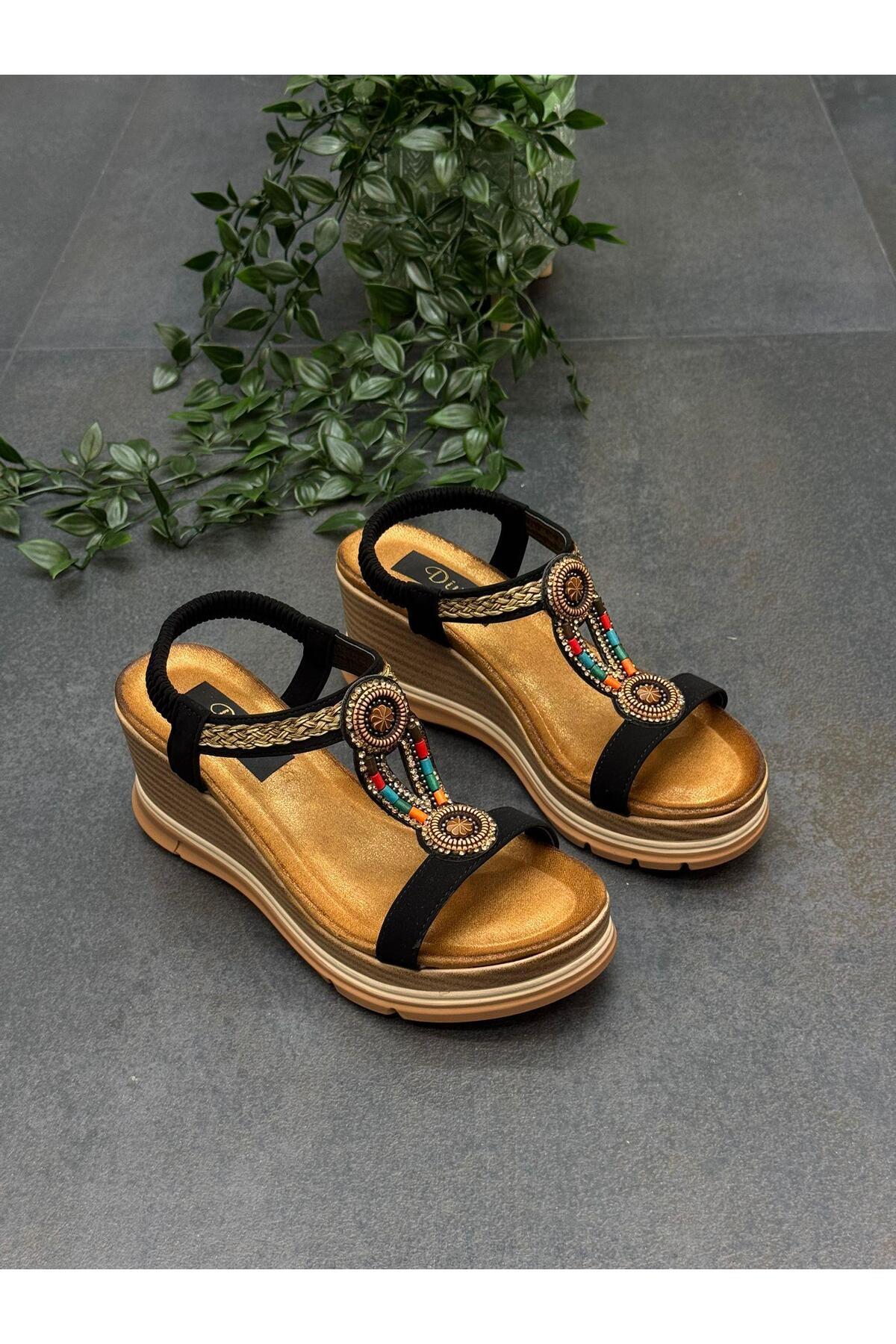 Siyah Taşlı Ortopedik Kadın Günlük Sandalet Siyah Taşlı Ortopedik Kadın Günlük Sandalet 25Y154-01 41