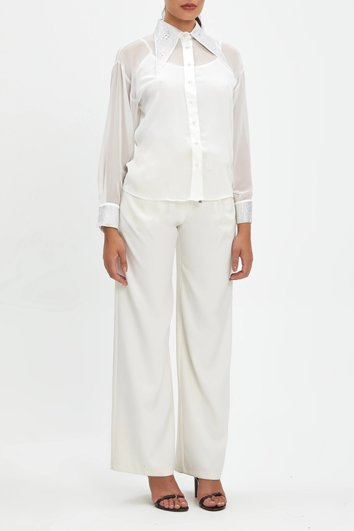 Taş Kurdale Detaylı Puantiyeli Şifon Bluz | EK100171819 Taş Kurdale Detaylı Puantiyeli Şifon Bluz | EK100171819 L