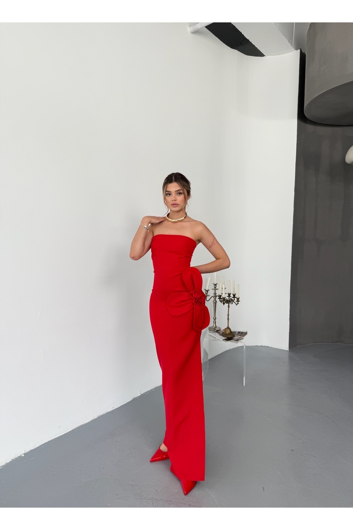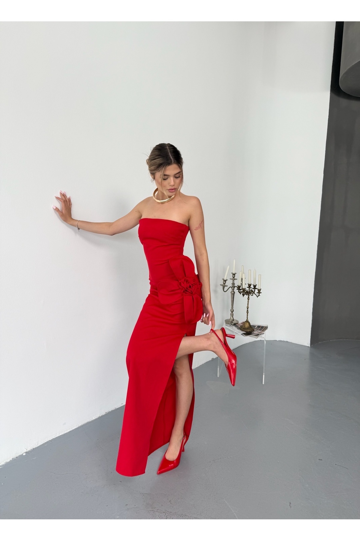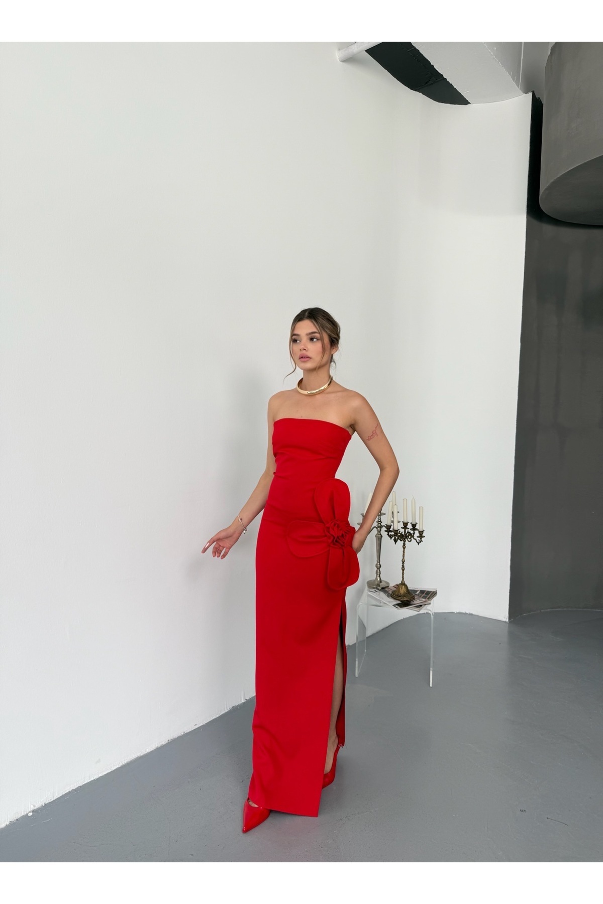 Fashion 2604 Papatya Detaylı Yırtmaçlı Abiye Kadın Elbise Fashion 2604 Papatya Detaylı Yırtmaçlı Abiye Kadın Elbise L