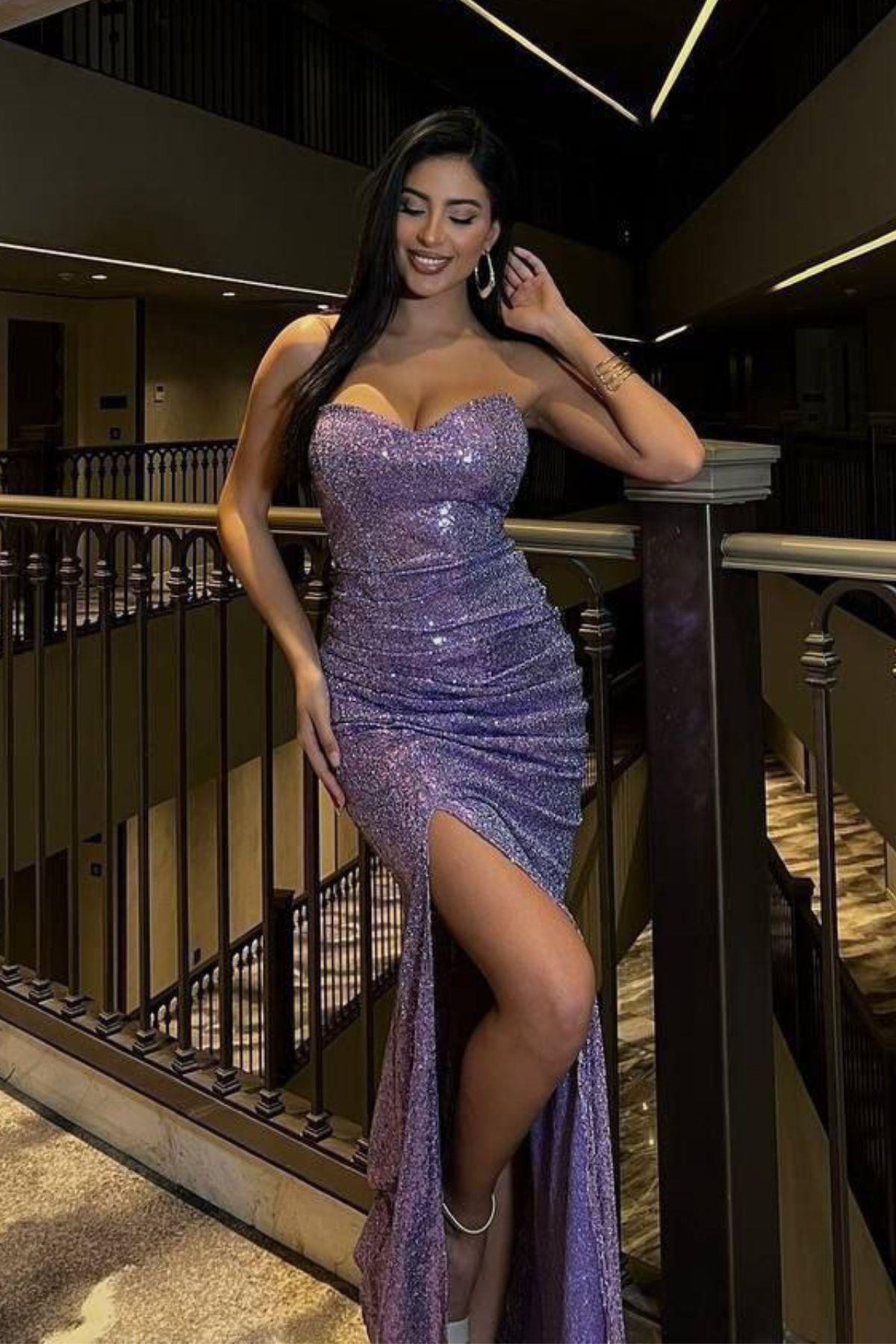 Kadın Straplez Yaka Yırtmaç Detaylı Drapeli Uzun Simli Pul Payetli Maxi Abiye Elbise Lila 583164 Kadın Straplez Yaka Yırtmaç Detaylı Drapeli Uzun Simli Pul Payetli Maxi Abiye Elbise Lila 583164 L