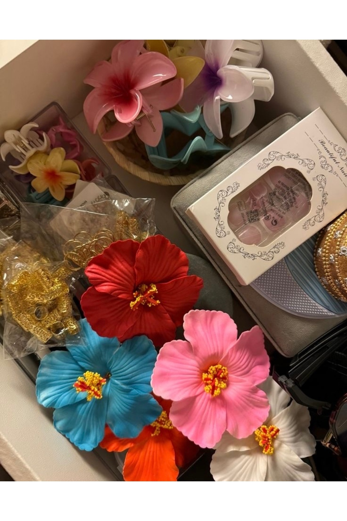 Tropik Havai Çiçekli Kırmızı Saç Tokası Tropik Havai Çiçekli Kırmızı Saç Tokası 045 تک سایز