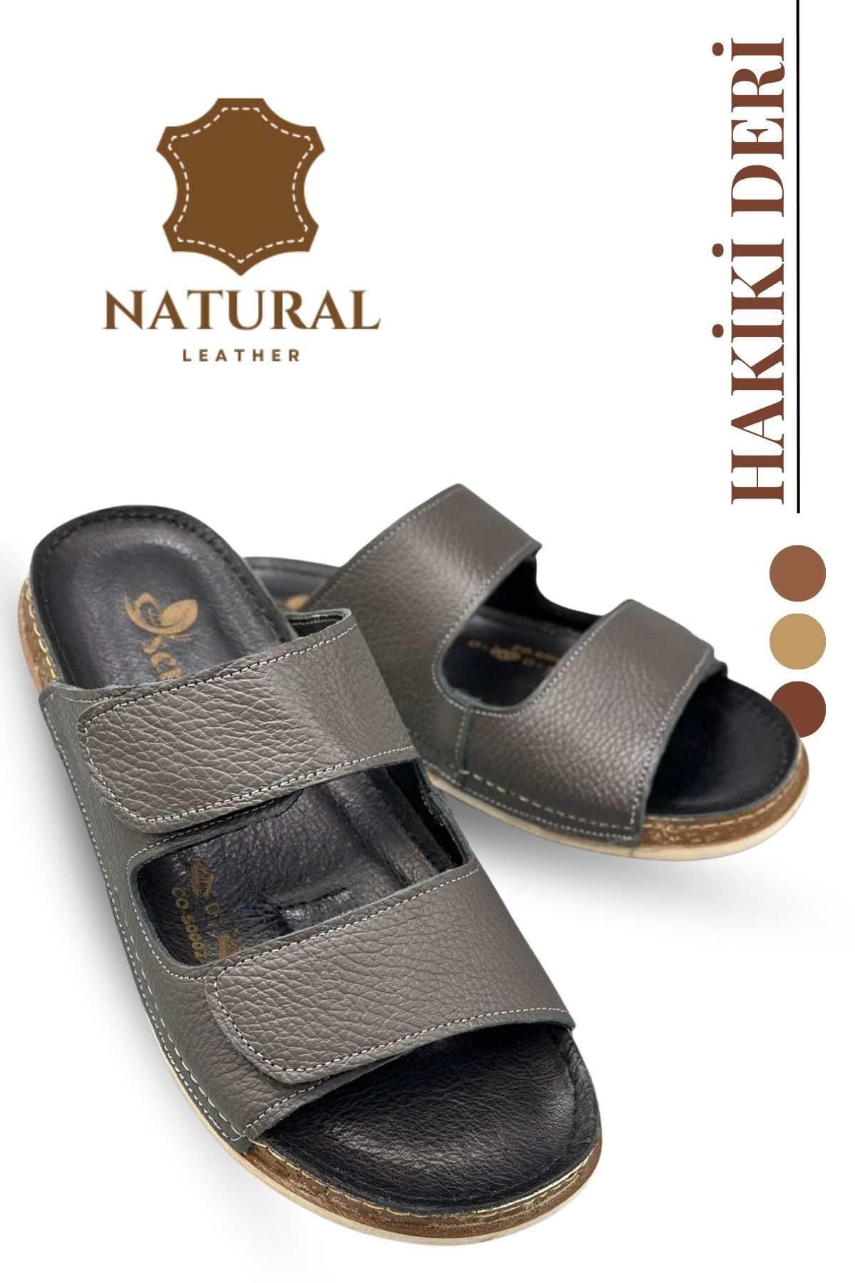 Çift Cırtlı Hakiki Deri Erkek Terlik Doğal Deri Terlik C Füme Çift Cırtlı Hakiki Deri Erkek Terlik Doğal Deri Terlik C Füme C0-S0002-10027 45