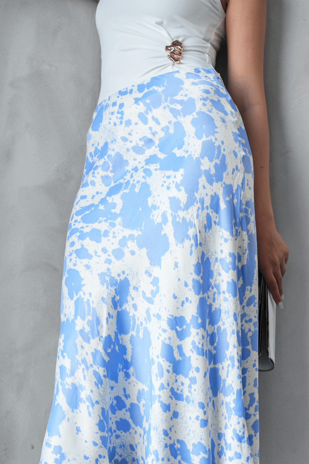 Yazlık Batik Desen Viskon Saten Kumaş Verev Model Midi Boy Etek - Mavi Desen Yazlık Batik Desen Viskon Saten Kumaş Verev Model Midi Boy Etek - Mavi Desen E0704 L