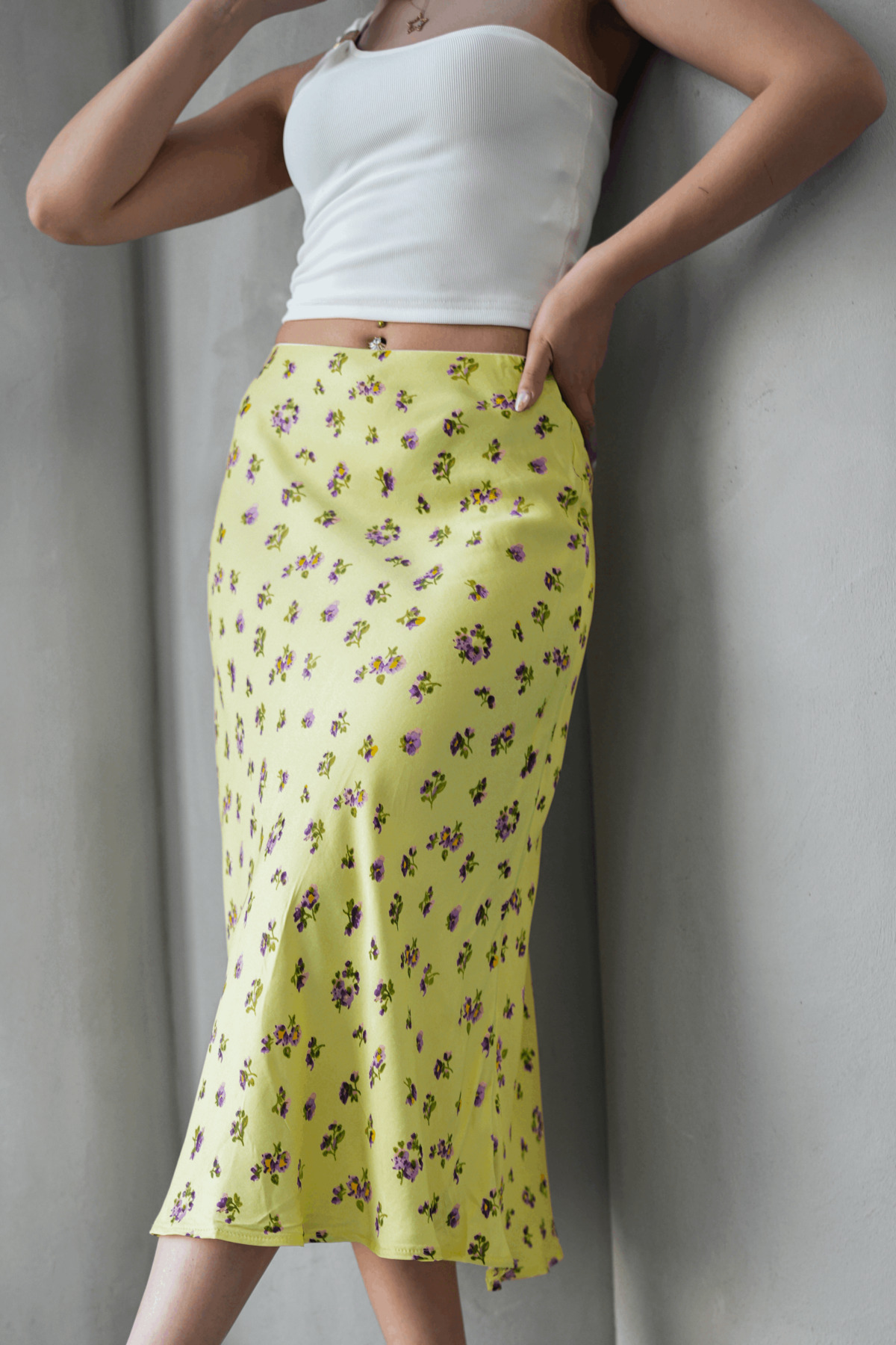 Yazlık Sarı Zemin Üzerine Çiçek Desen Viskon Saten Midi Boy Etek - Sarı Zemin Yazlık Sarı Zemin Üzerine Çiçek Desen Viskon Saten Midi Boy Etek - Sarı Zemin E0704 L