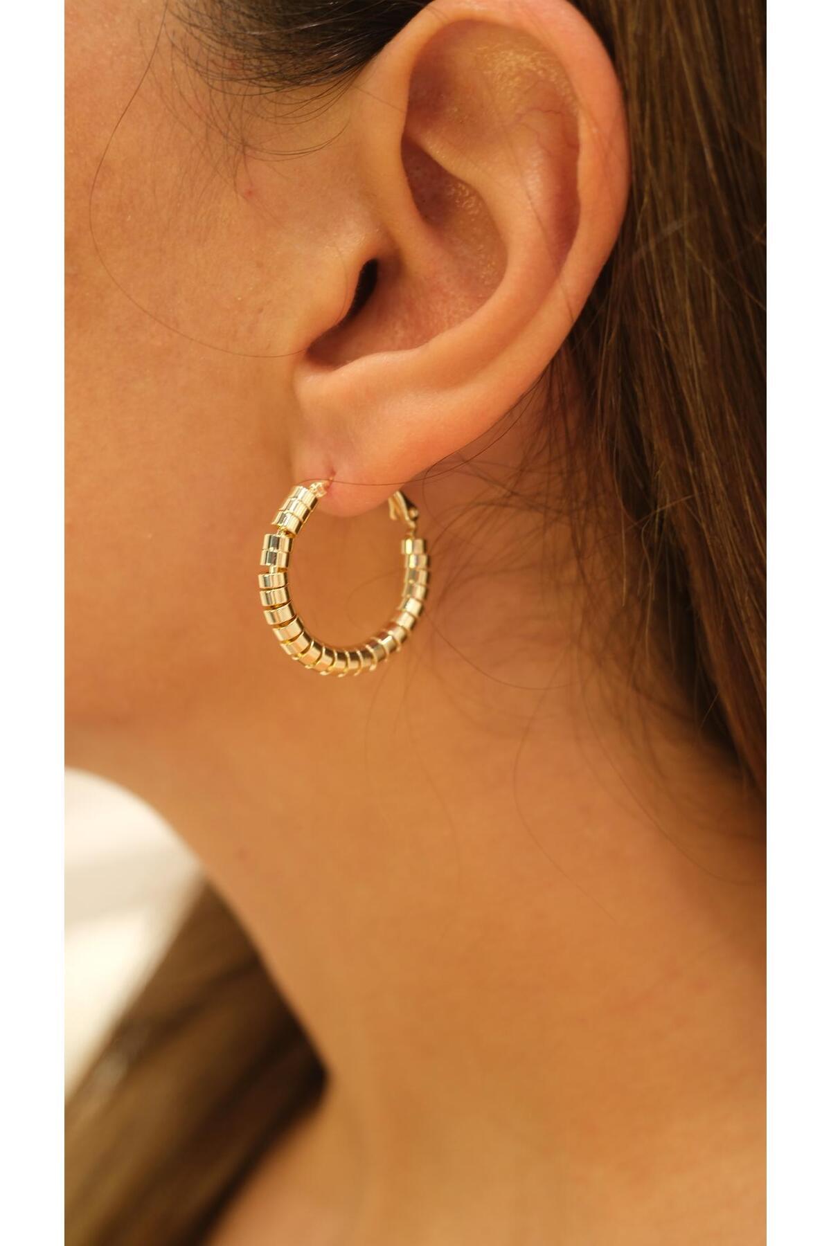 Gold Zirkon Taş Tırtıklı Plaka Halka Küpe Gold Zirkon Taş Tırtıklı Plaka Halka Küpe BİJUMN00684 تک سایز