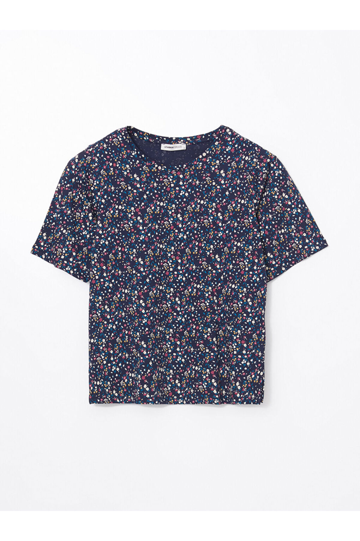 Bisiklet Yaka Çiçekli Kadın Tişört Bisiklet Yaka Çiçekli Kadın Tişört S59179Z8 - LSJ