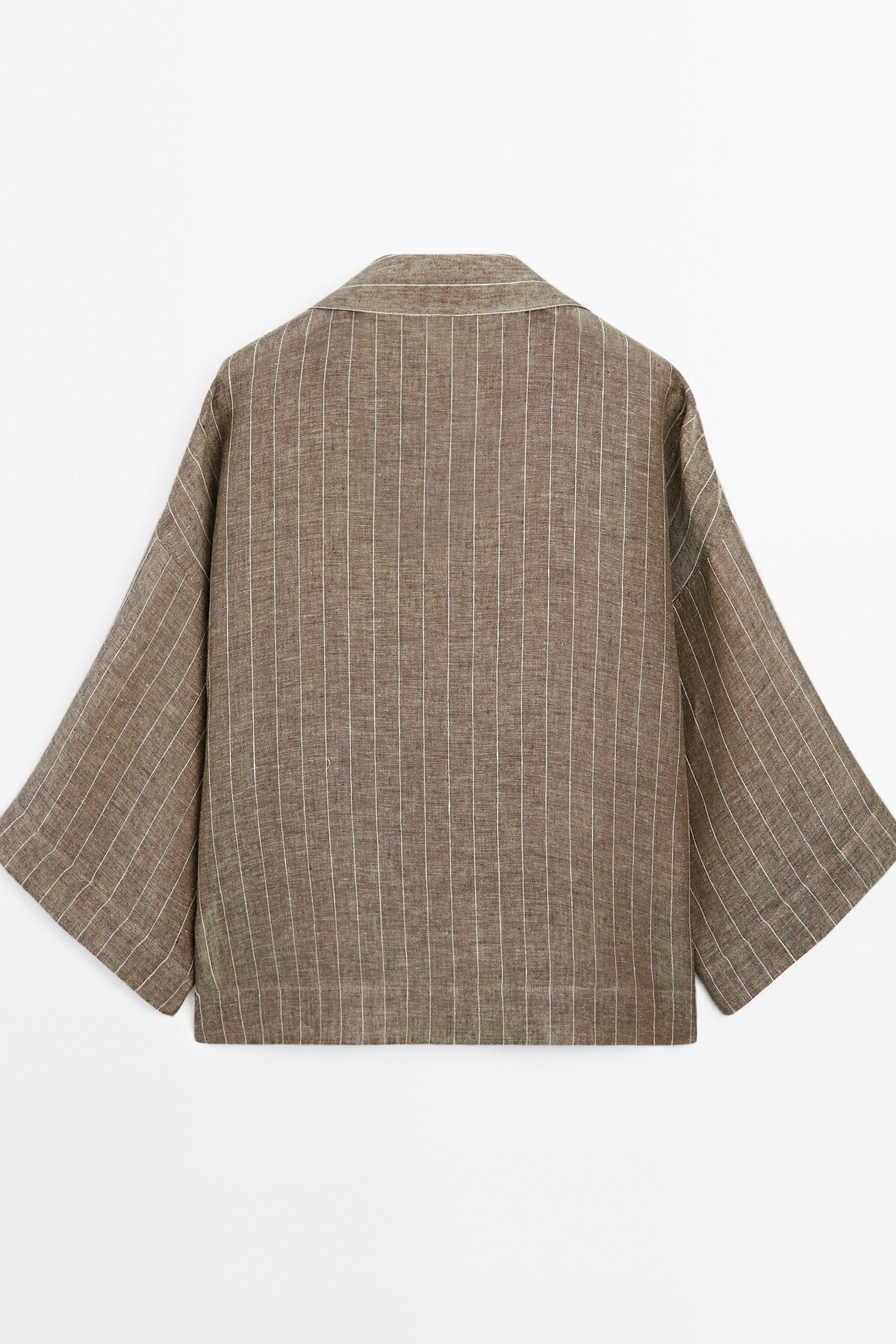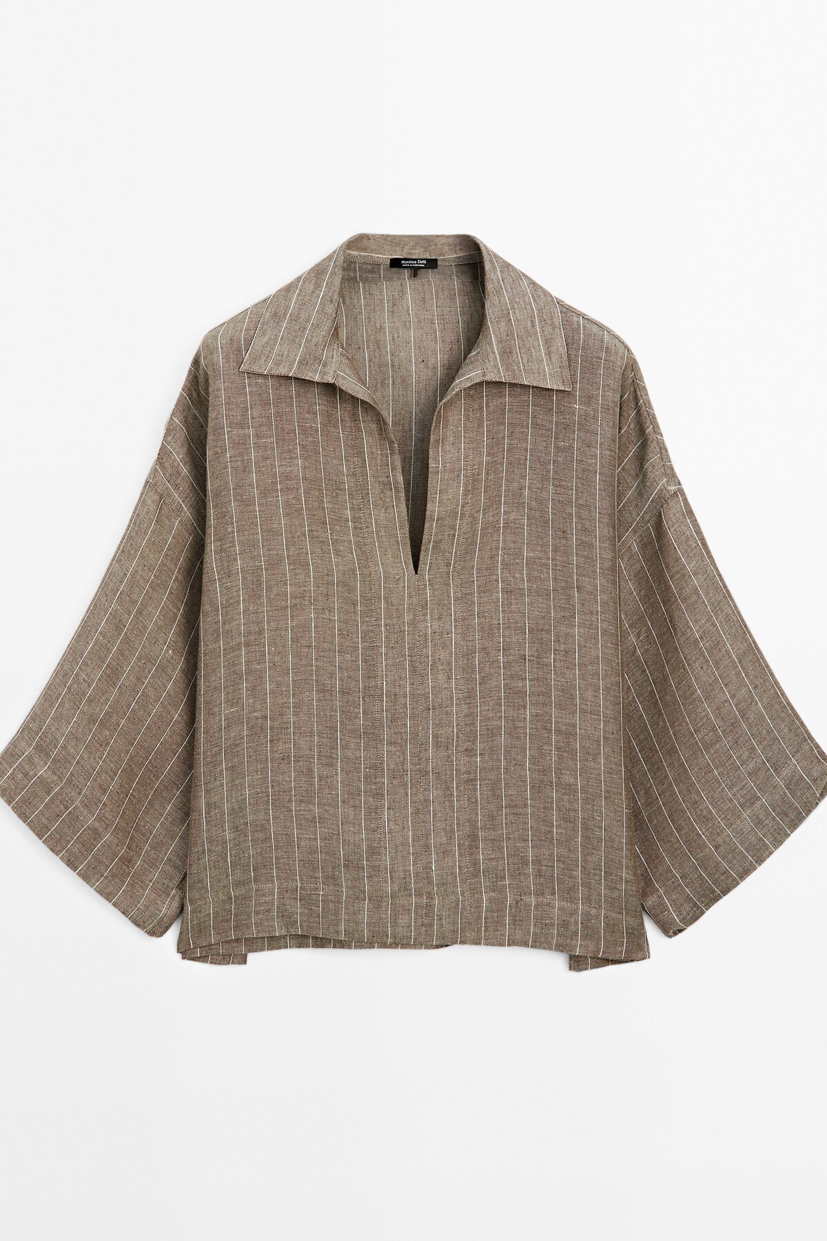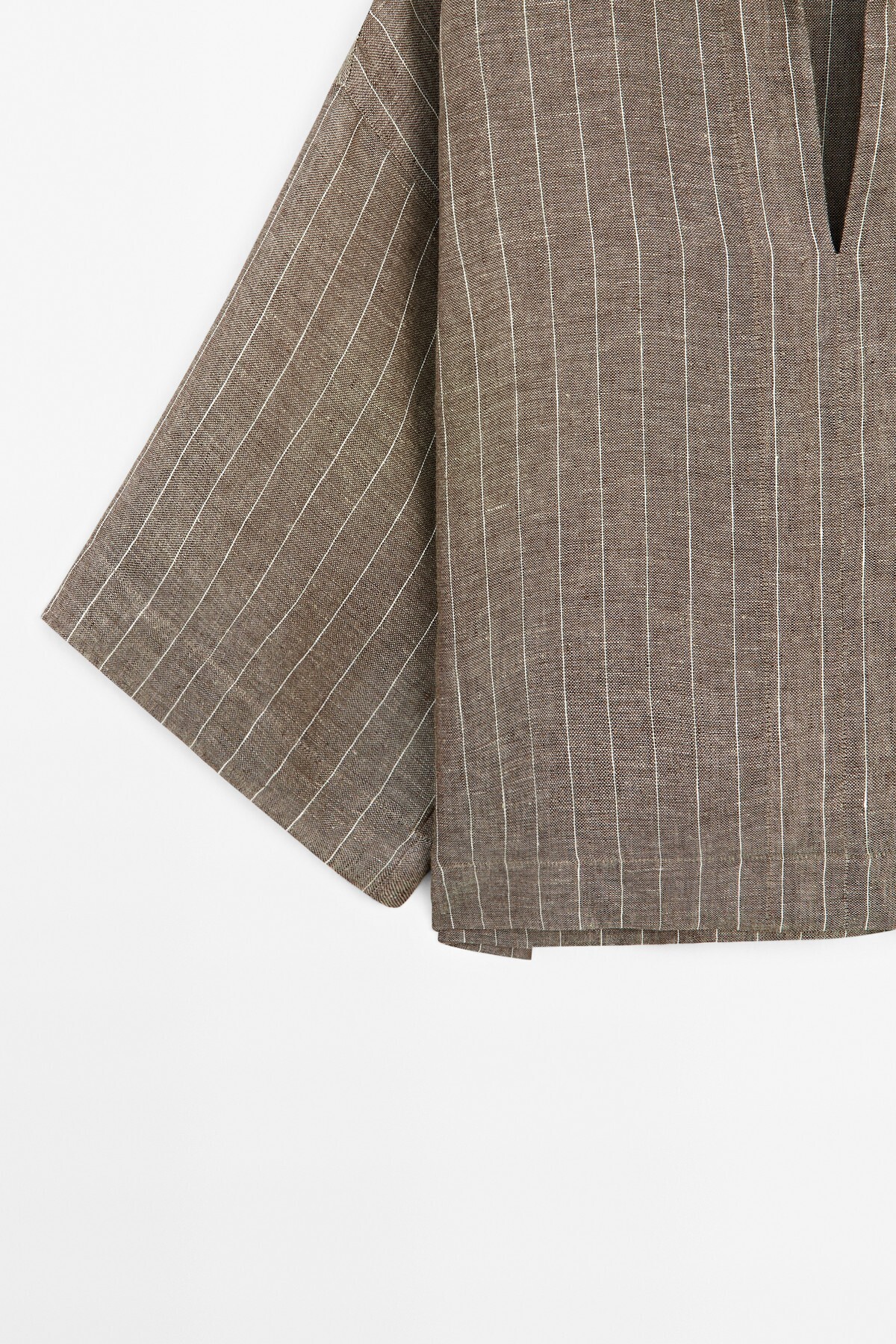 Çizgili keten açık yaka bluz Çizgili keten açık yaka bluz 00110779205167922 L