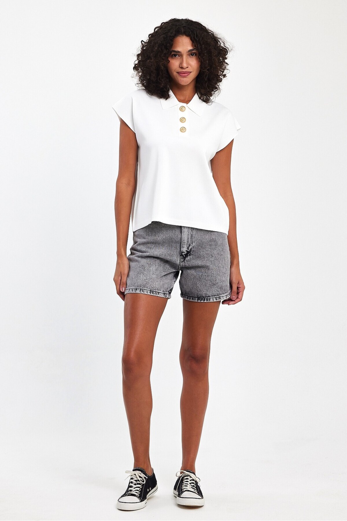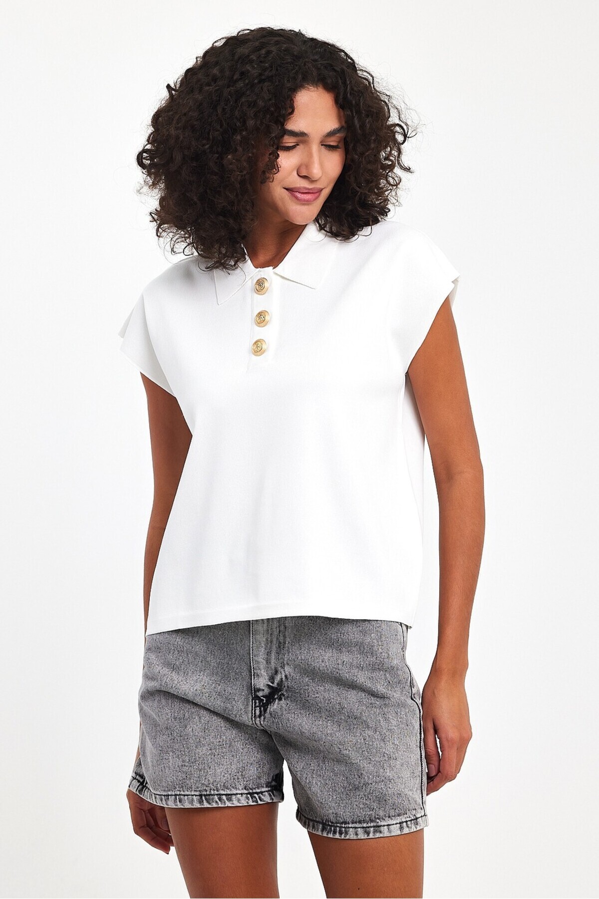 Gold Düğmeli Polo Yaka Kolsuz Triko Bluz Gold Düğmeli Polo Yaka Kolsuz Triko Bluz LMVS250405 XL