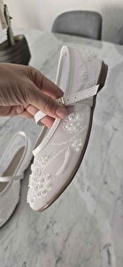 Beyaz File Nakış Ve Boncuk Detaylı Yuvarlak Burun Lüks Kadın Babet Beyaz File Nakış Ve Boncuk Detaylı Yuvarlak Burun Lüks Kadın Babet İNCİLİ BABET 40