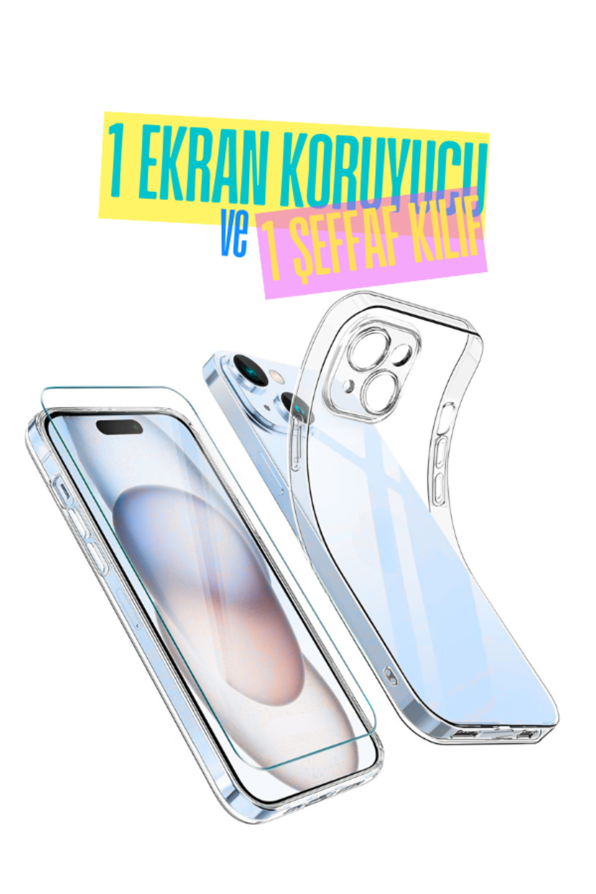 1C1K iPhone 15 Uyumlu 1 Kamera Korumalı Şeffaf Silikon Kılıf + 1 Temperli Cam Ekran Koruyucu 1C1K iPhone 15 Uyumlu 1 Kamera Korumalı Şeffaf Silikon Kılıf + 1 Temperli Cam Ekran Koruyucu 1C1K-IPH15 تک سایز