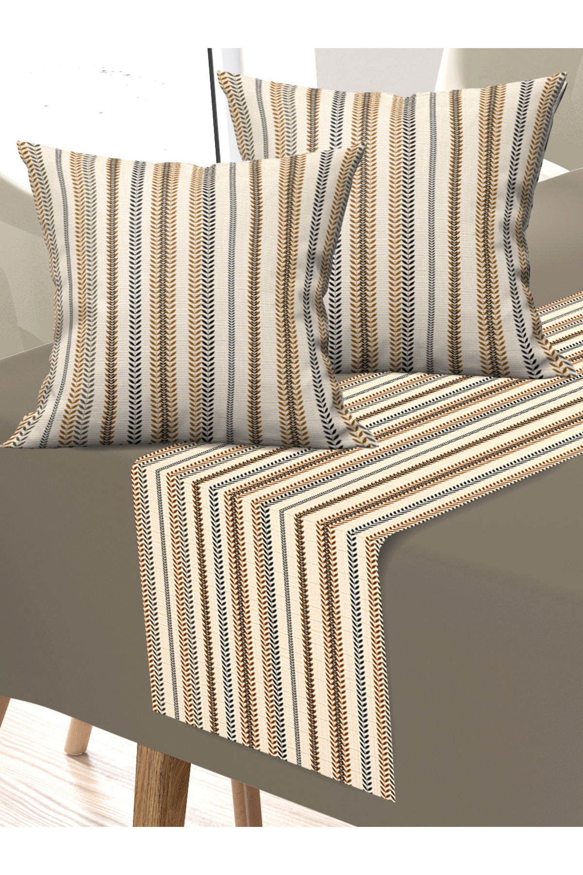 Yön Çizgili Mikro Fiber Kumaş, Balkon, Bahçe, Mutfak Runner ve 2'li Kırlent Kılıf Set Yön Çizgili Mikro Fiber Kumaş, Balkon, Bahçe, Mutfak Runner ve 2'li Kırlent Kılıf Set ARRK353 تک سایز