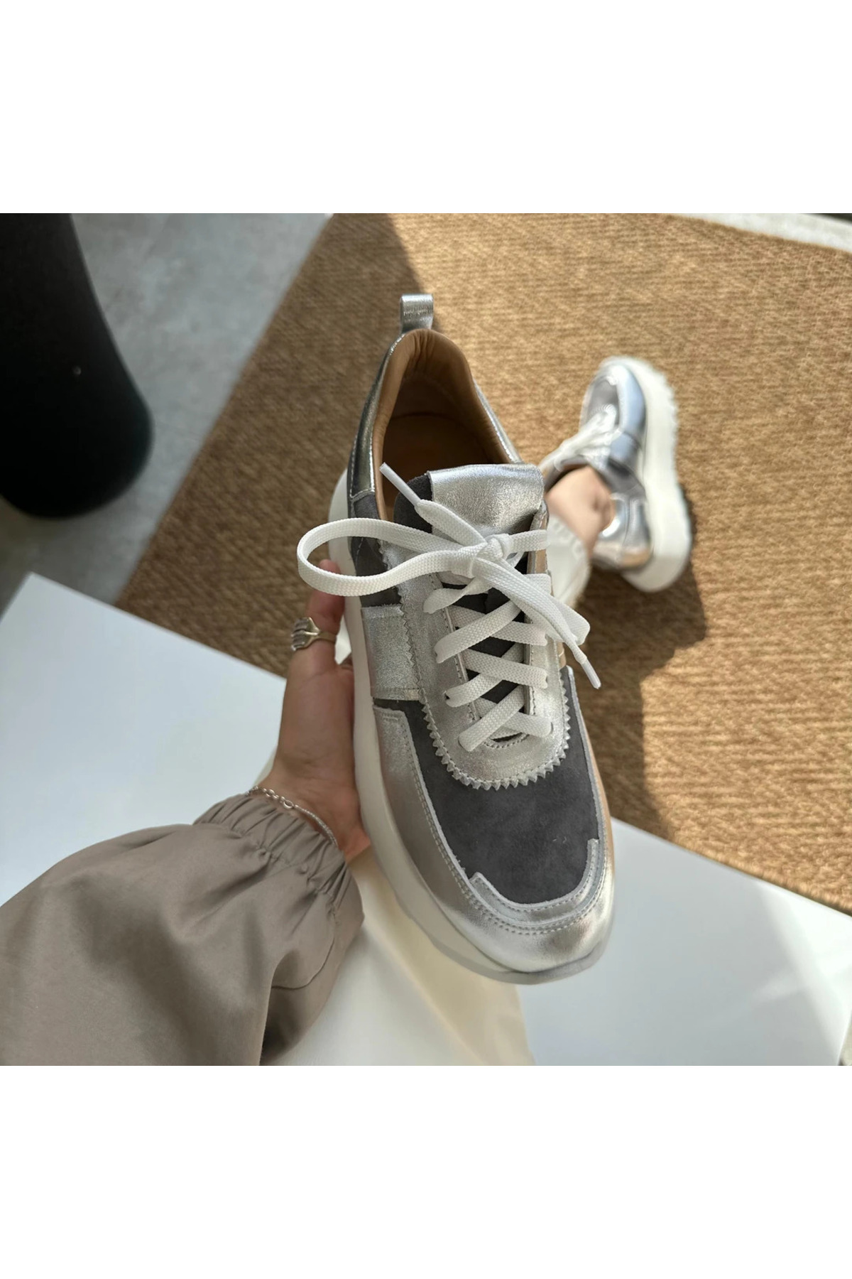 Hakiki Deri Gümüş-Gri Garni Sneaker Hakiki Deri Gümüş-Gri Garni Sneaker HDGGGS-GRİ 40