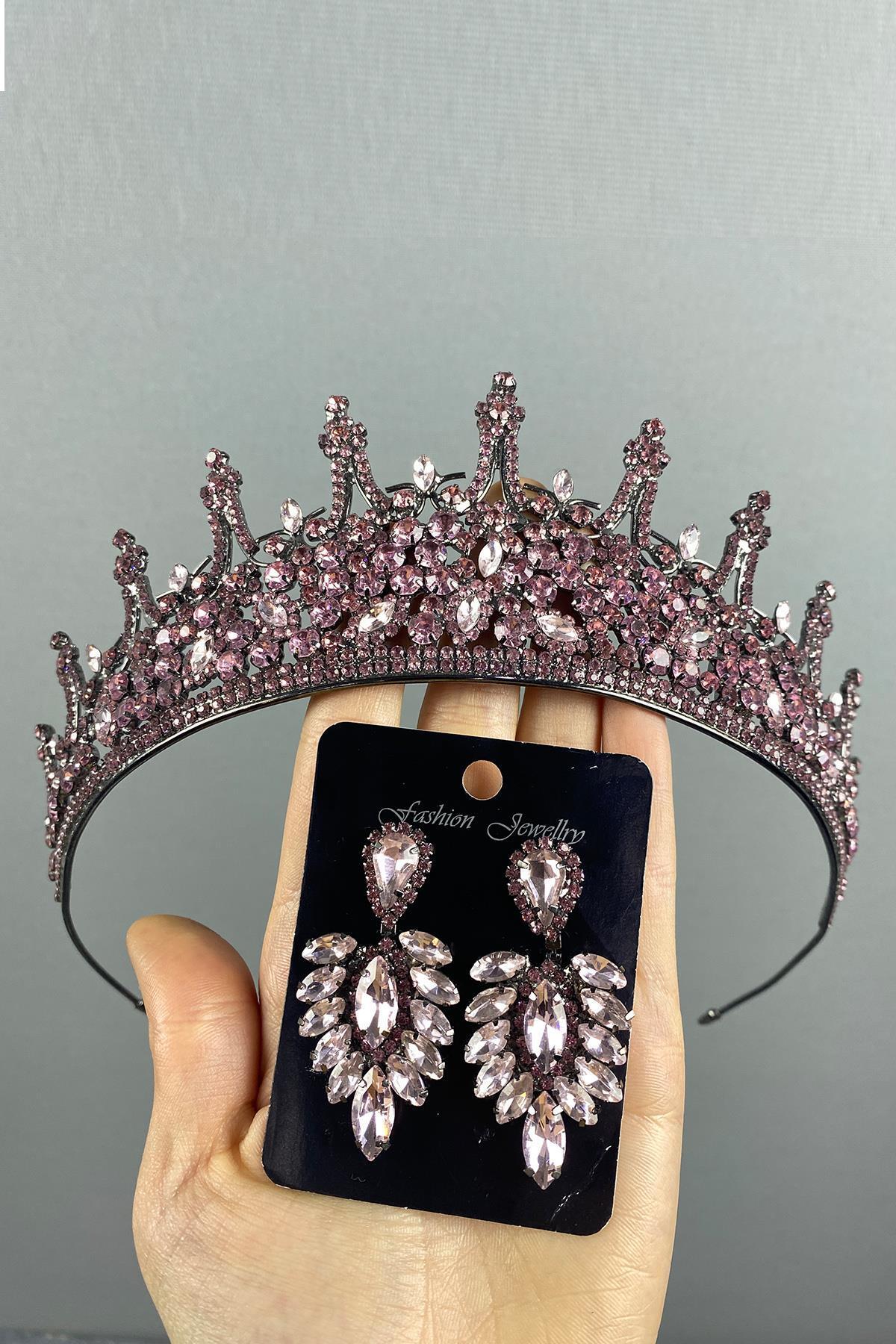 Belicia Pembe Gelin Kına Tacı Özel Gün Aksesuar Kadın Taç Ve Damla Mekik Küpe Takımı BELICIA-DAMLA