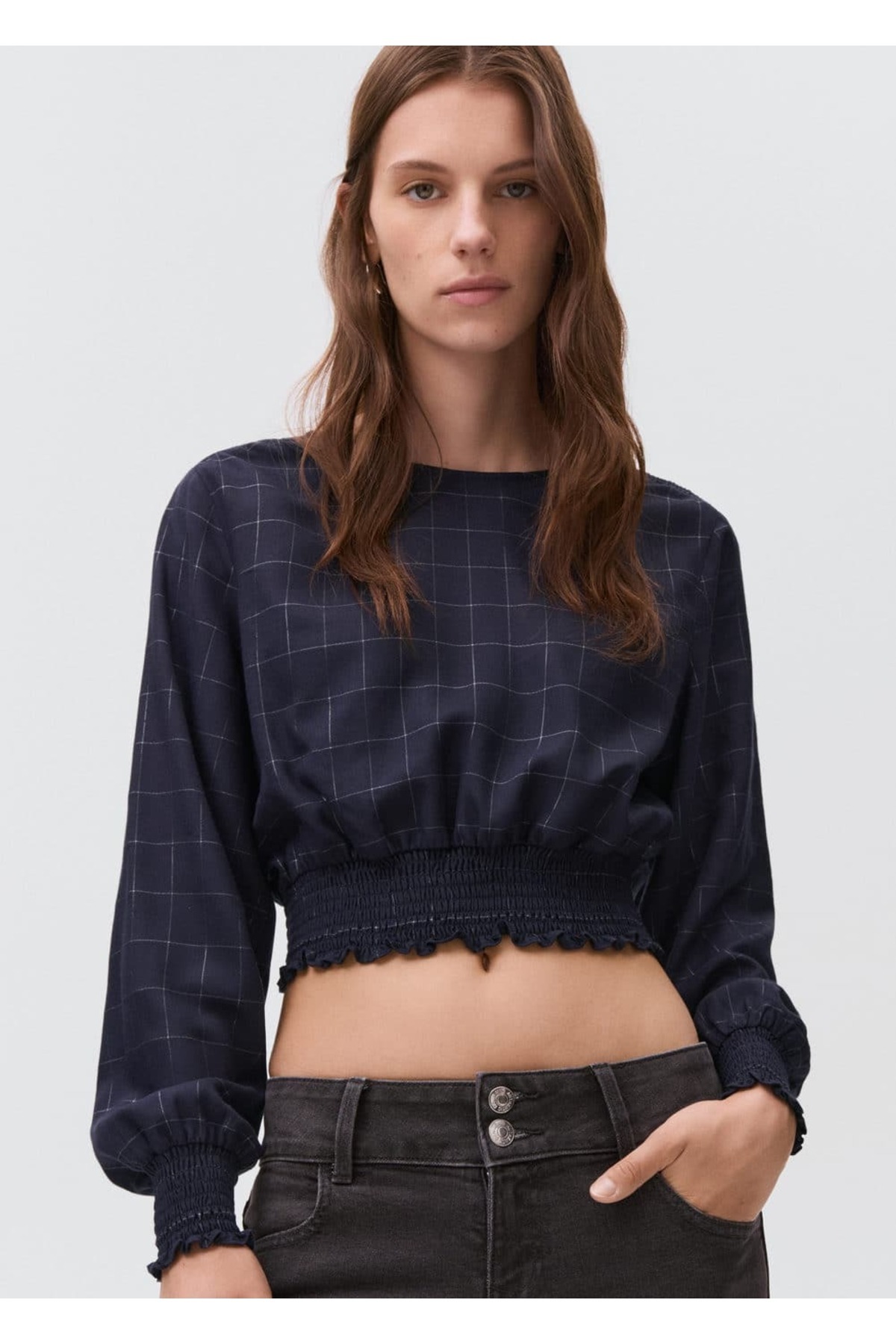 Boyun kısmı bağ detaylı asimetrik bluz Boyun kısmı bağ detaylı asimetrik bluz 17091288 XL