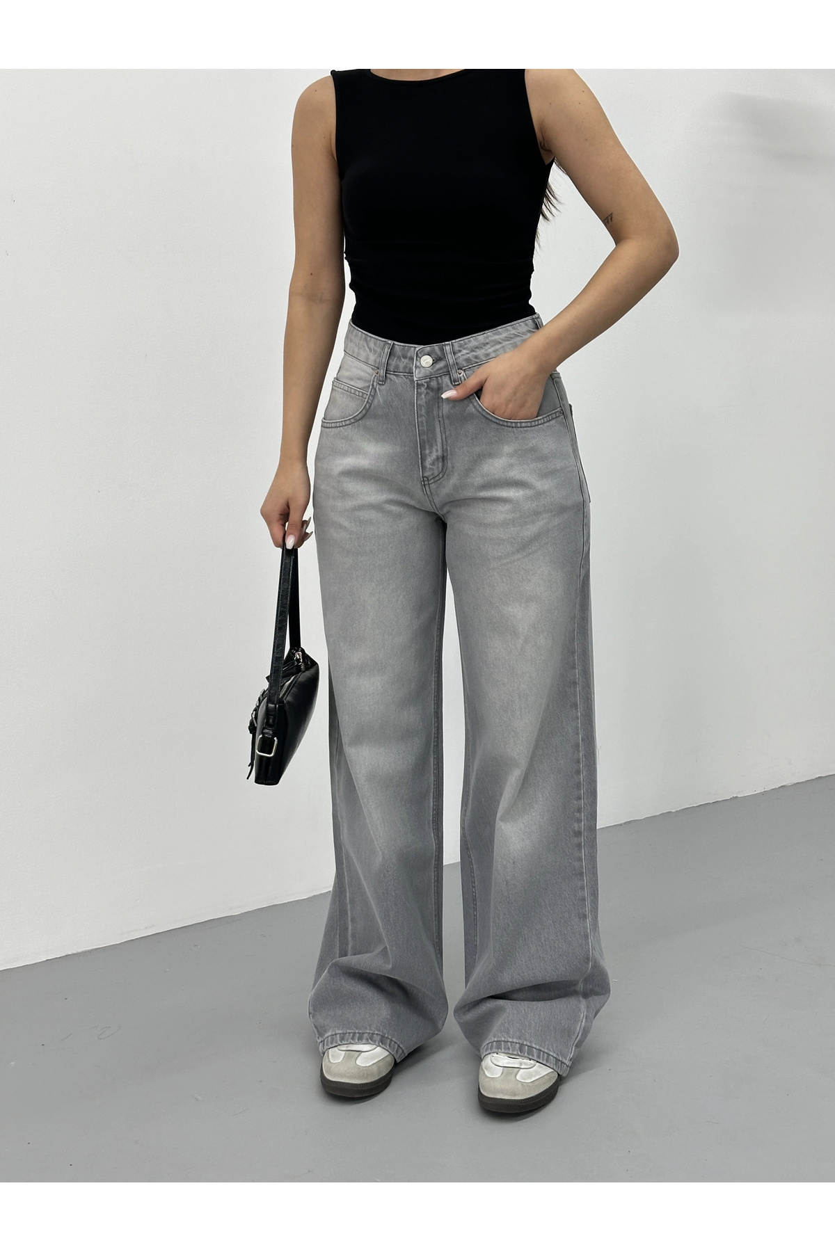 Kadın Kemer Tokalı Baggy Jean Pantolon Efektli Açık Füme 4003 Kadın Kemer Tokalı Baggy Jean Pantolon Efektli Açık Füme 4003 709453-525Y00084003 42