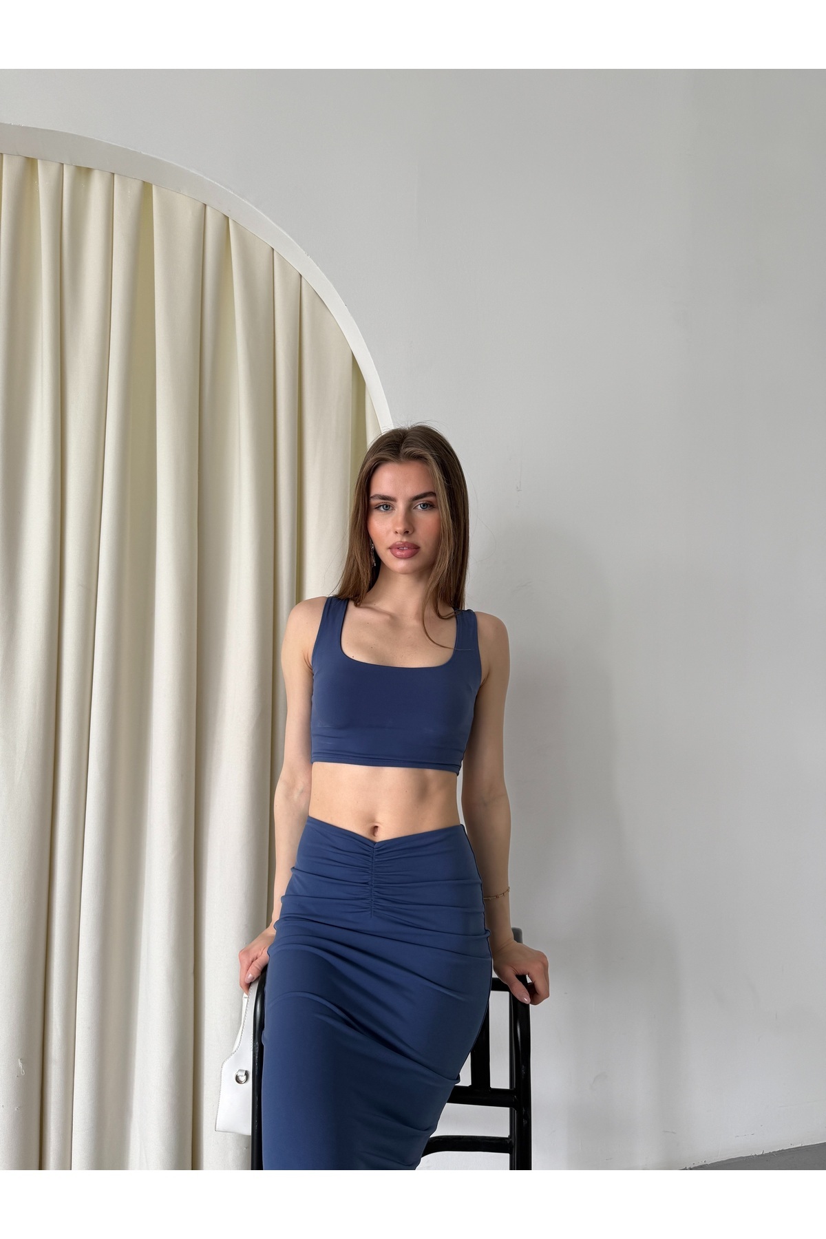 ETEK TAKIM-ÖN BÜZGÜ DETAYLI,ASTARLI,MİDİ BOY ETEK.KALIN ASKILI,CROP BLUZ. ETEK TAKIM-ÖN BÜZGÜ DETAYLI,ASTARLI,MİDİ BOY ETEK.KALIN ASKILI,CROP BLUZ. 621 L
