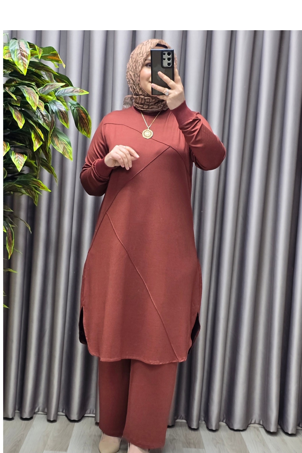 Kadın Tesettür Giyim Büyük Beden Çağla Krep İkili Takım Kadın Tesettür Giyim Büyük Beden Çağla Krep İkili Takım ELT3020 54