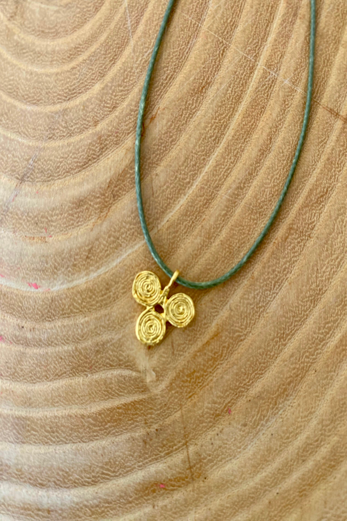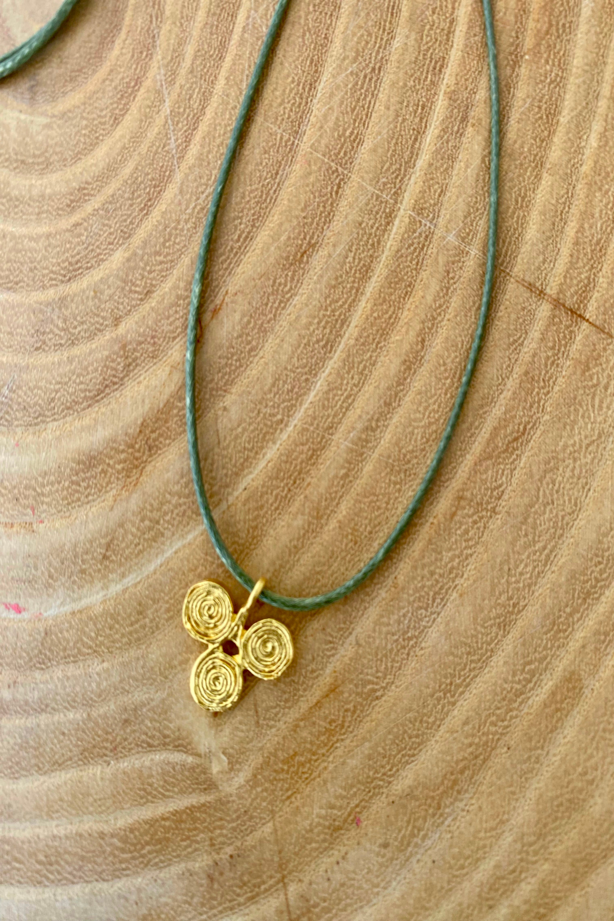 Gold triskelion yeşil ip kaydırmalı kilit örgü kolye Gold triskelion yeşil ip kaydırmalı kilit örgü kolye 0002trs00010 75