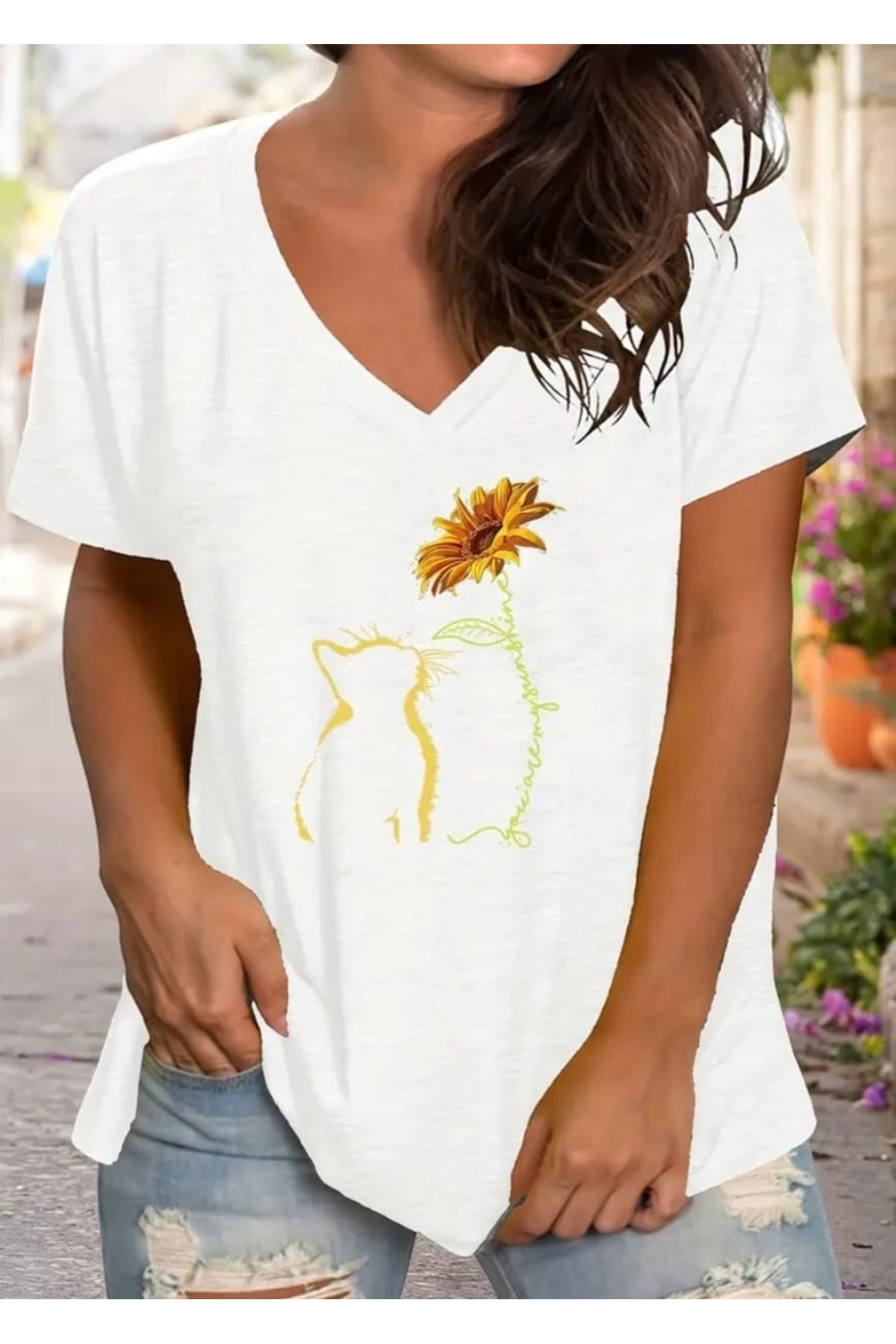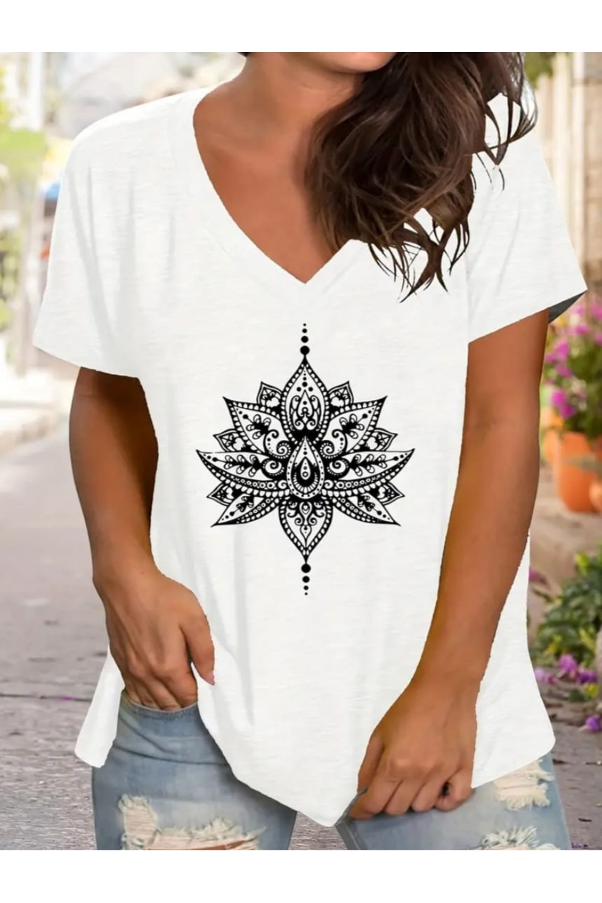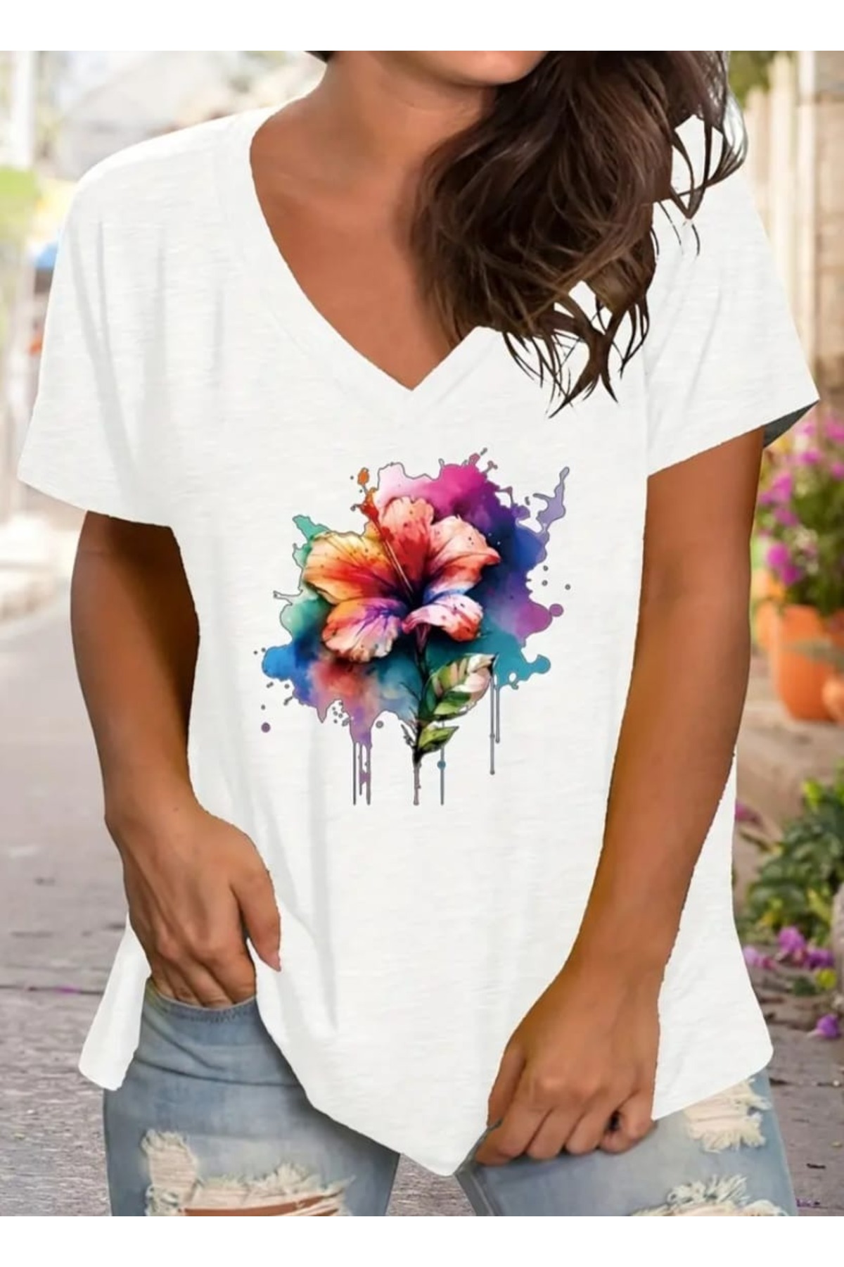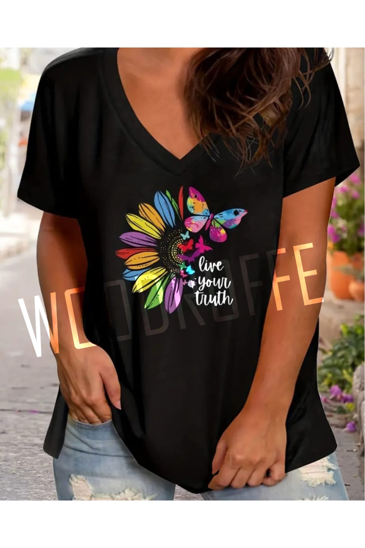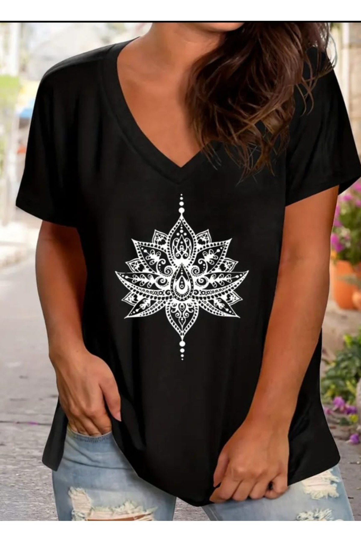 Kadın Çiçek Baskılı V Yaka Siyah T-shirt Salaş Oversize Kadın Çiçek Baskılı V Yaka Siyah T-shirt Salaş Oversize v-bsklı 3XL