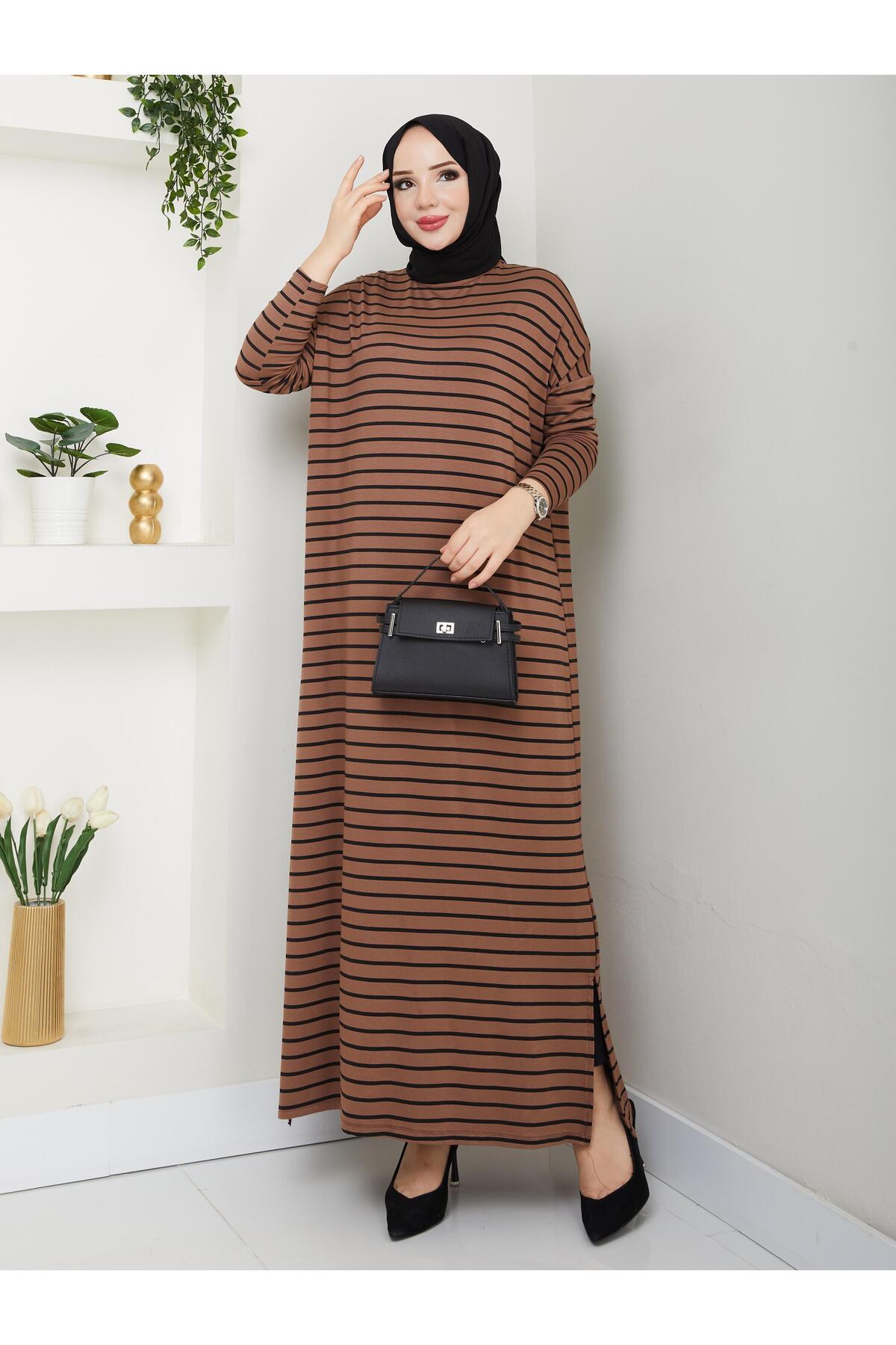 Hat Belli Etmeyen Su Gibi Akan Kumaşıyla Çizgili Viskon Penye Elbisemiz Hat Belli Etmeyen Su Gibi Akan Kumaşıyla Çizgili Viskon Penye Elbisemiz 1217 تک سایز