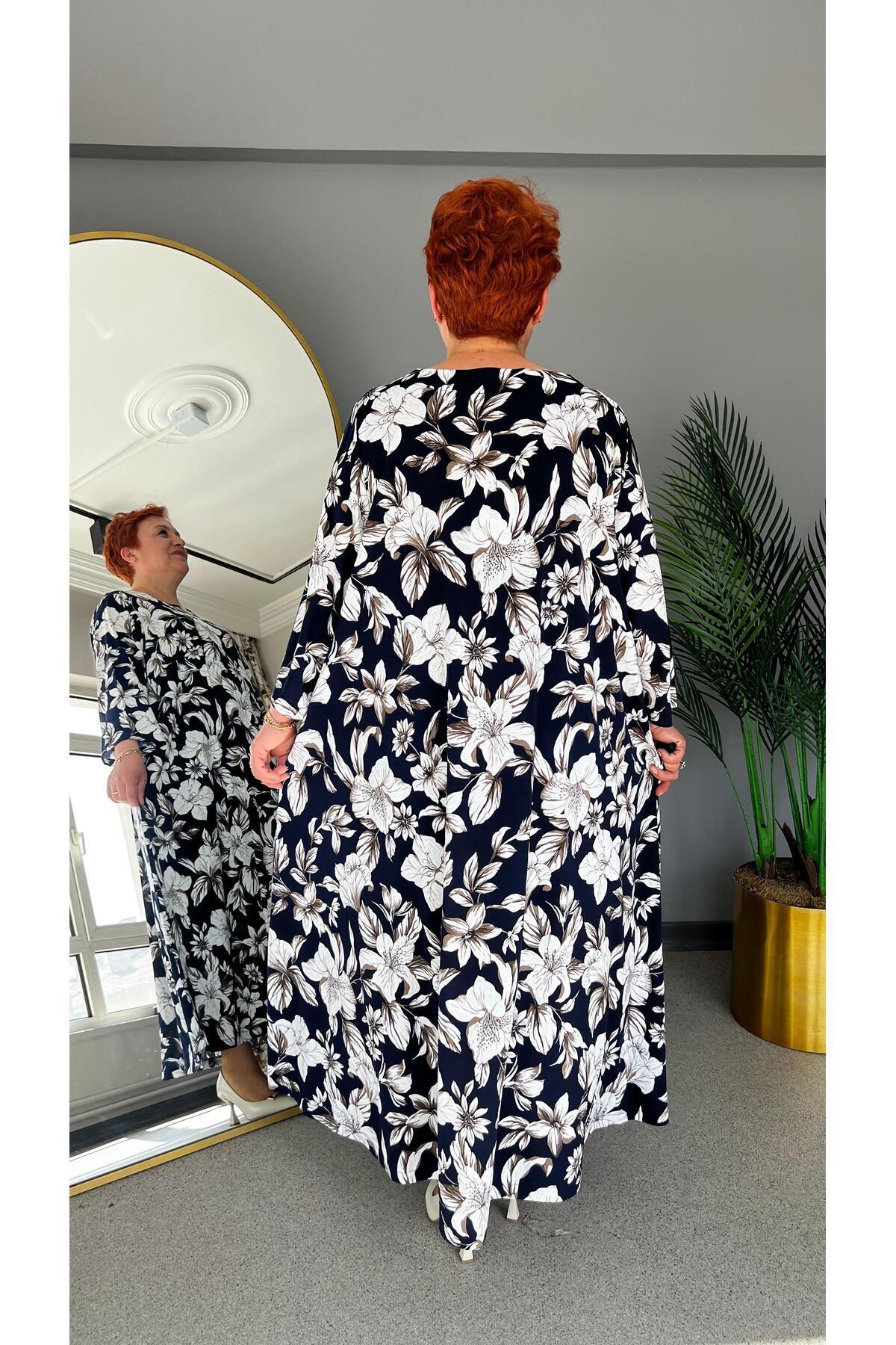 Büyük Beden Çİçek Desenli Elbise Büyük Beden Çİçek Desenli Elbise 25YELB-00088 2