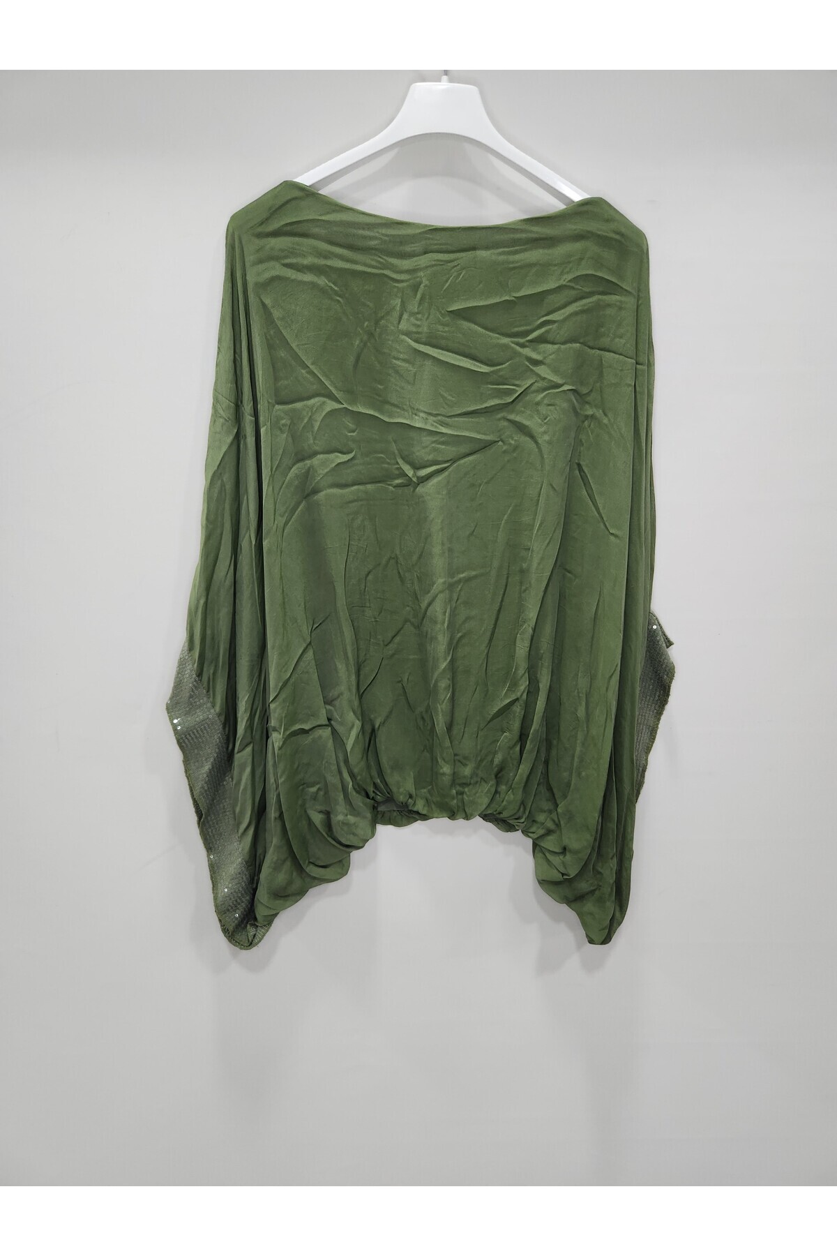 Kadın Haki İtalyan Yarasa Kol Pul Detaylı İpek Bluz Kadın Haki İtalyan Yarasa Kol Pul Detaylı İpek Bluz ITL22B11519Y Standart