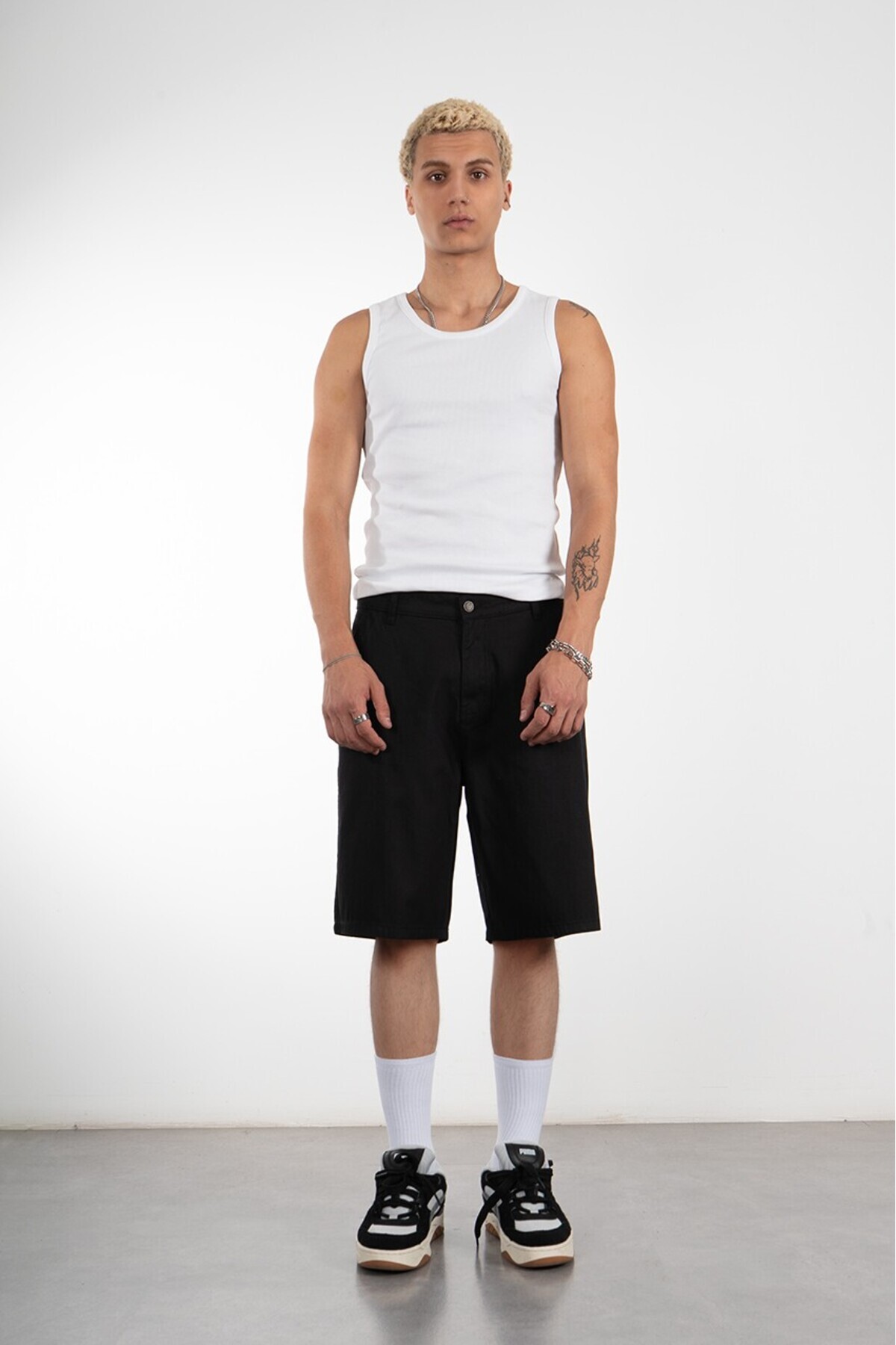 Siyah Gabardin Baggy Jean Erkek Şort Jorts Siyah Gabardin Baggy Jean Erkek Şort Jorts UK1478SY XL
