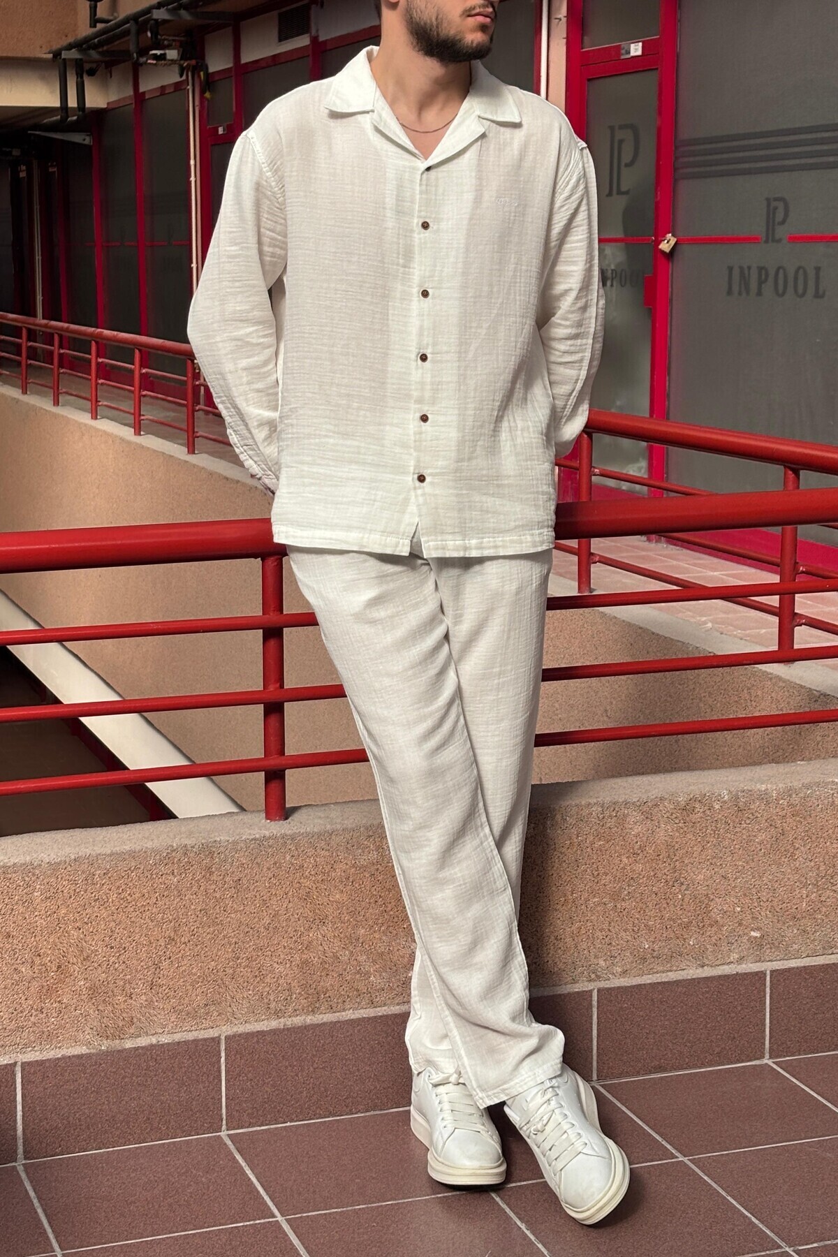 Krem Renk Keten Görünümlü Müslin Yazlık Takım - Gömlek ve Şort Erkek Takım Krem Renk Keten Görünümlü Müslin Yazlık Takım - Gömlek ve Şort Erkek Takım PBD3129 2XL