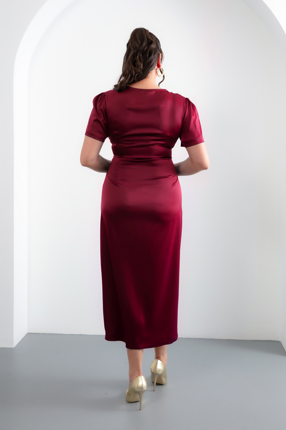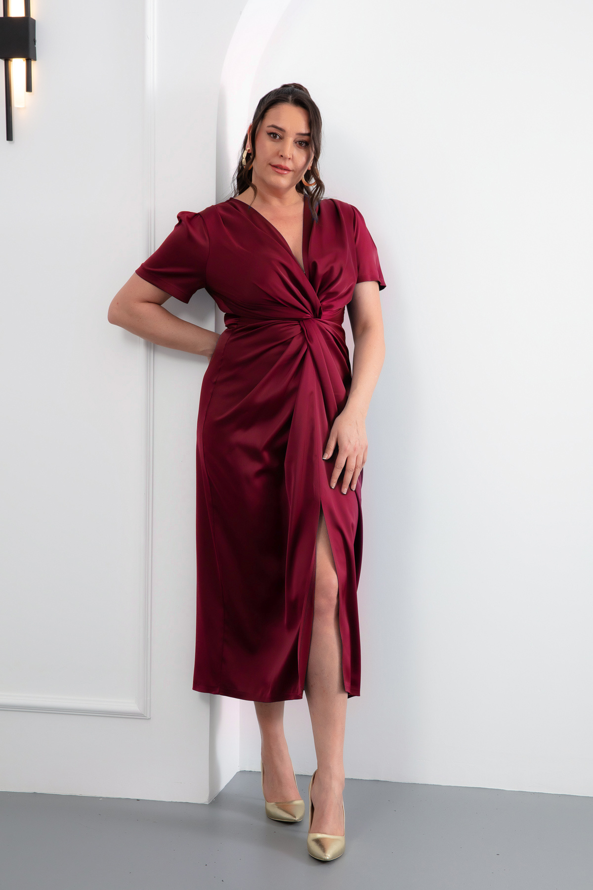 Kadın Bordo Düğüm Detaylı Büyük Beden Midi Saten Elbise Kadın Bordo Düğüm Detaylı Büyük Beden Midi Saten Elbise 25Y221601BB 50