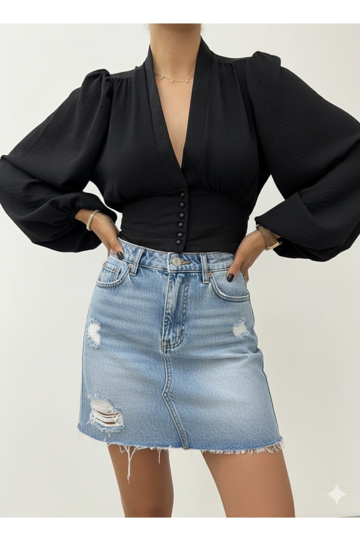 Kadın Kahverengi Balon Kollu İşlemeli Crop Poplin Bluz TP00082 Kadın Kahverengi Balon Kollu İşlemeli Crop Poplin Bluz TP00082 40