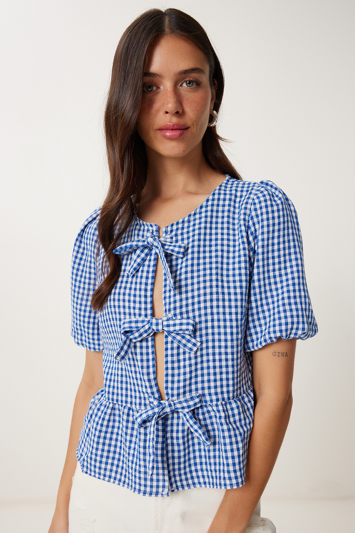 Kadın Pembe Kareli Esnek Crop Dokuma Bluz TP00070 Kadın Pembe Kareli Esnek Crop Dokuma Bluz TP00070 40