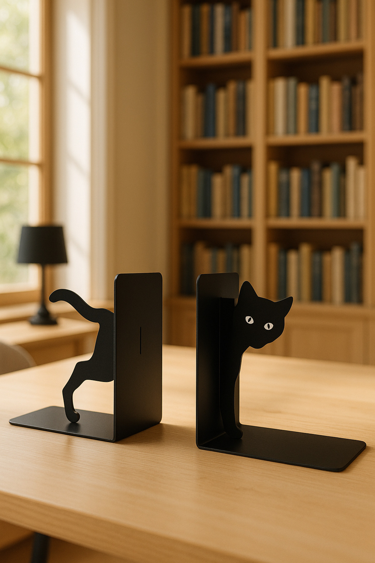 Sevimli Gözlü Kedi Figürlü Metal Kitap Tutucu 2’li Set – Dekoratif Kitaplık ve Masa Üstü Aksesuarı Sevimli Gözlü Kedi Figürlü Metal Kitap Tutucu 2’li Set – Dekoratif Kitaplık ve Masa Üstü Aksesuarı ARTILED07 تک سایز