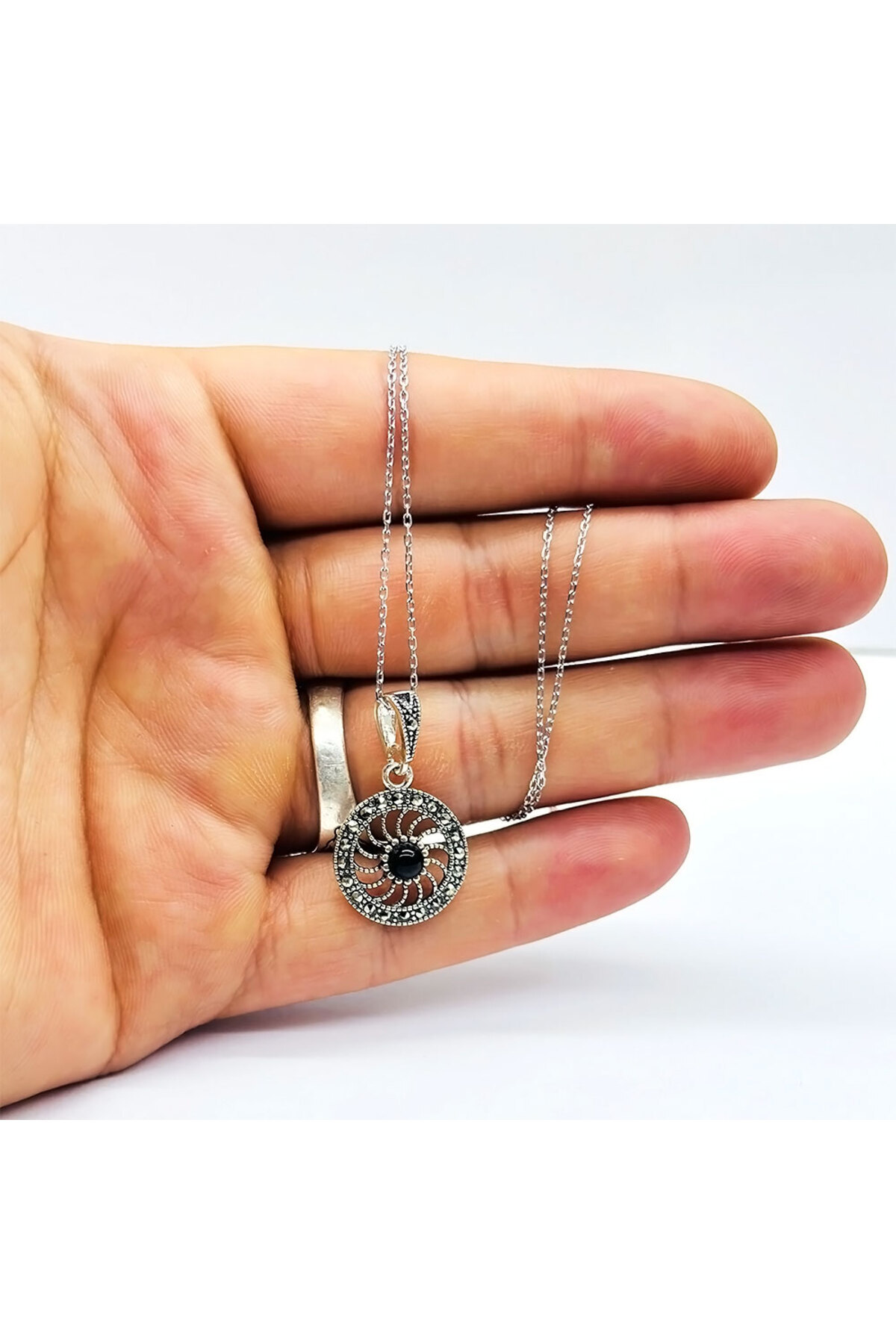 Tekerlek Model Oltu Taşı İşçilikli 925 Ayar Gümüş Kolye Tekerlek Model Oltu Taşı İşçilikli 925 Ayar Gümüş Kolye 1967 43 cm