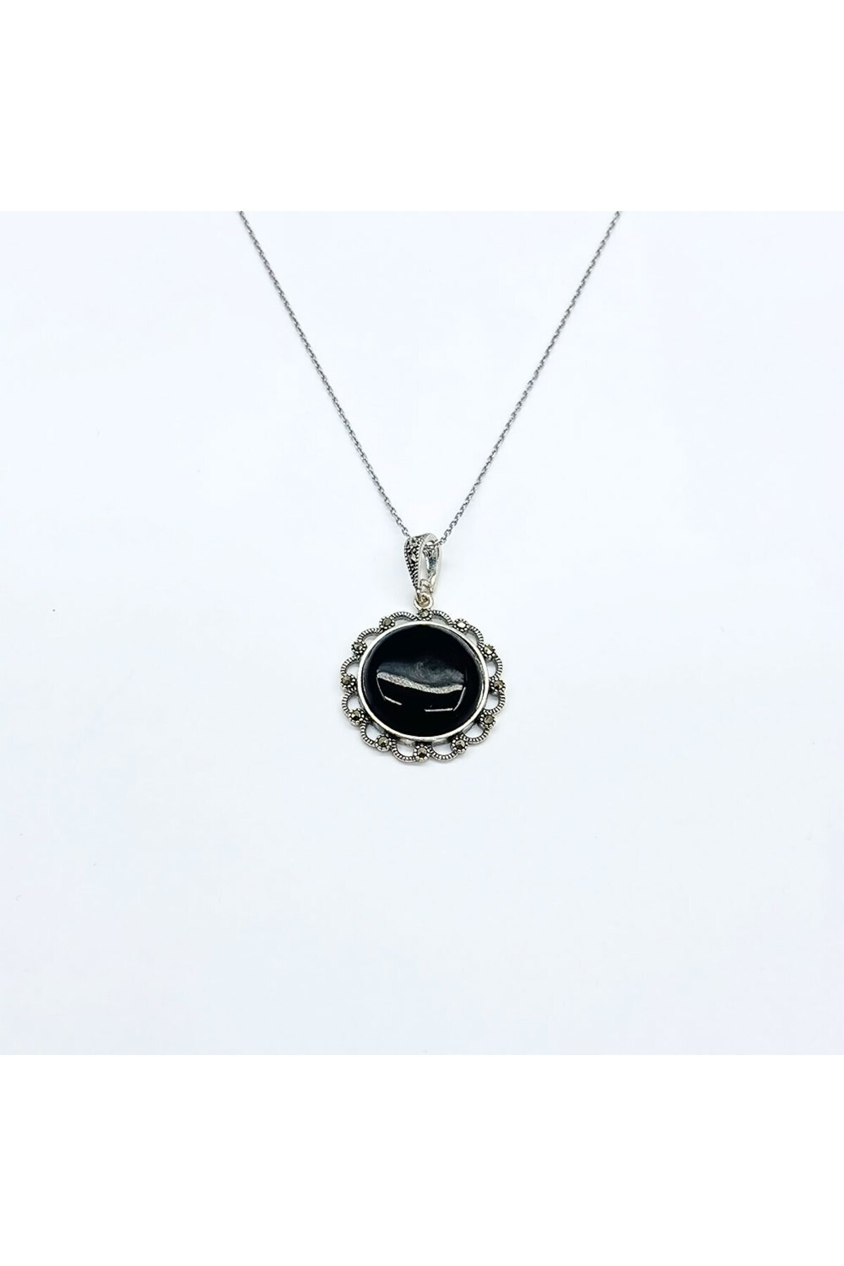 Zirkon Oltu Taşı İşçilikli 925 Ayar Gümüş Kolye Zirkon Oltu Taşı İşçilikli 925 Ayar Gümüş Kolye 1971 43 cm