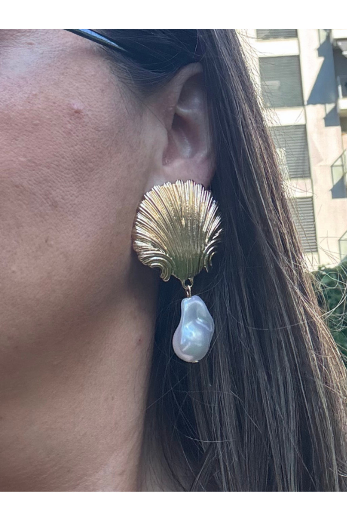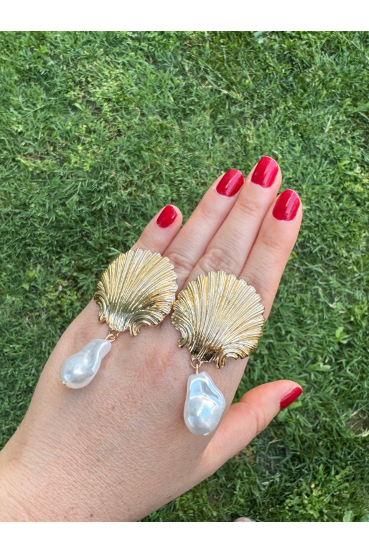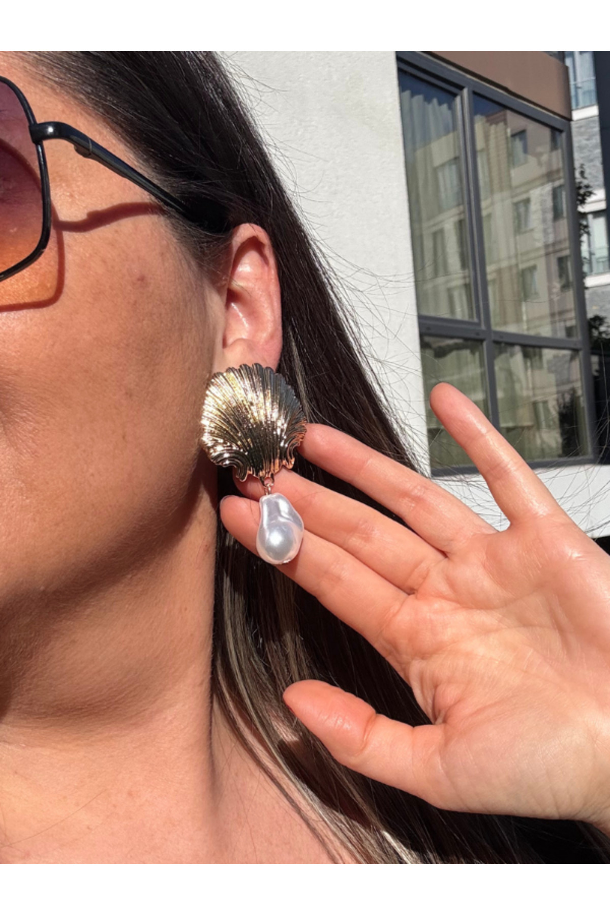 Midye İncili Sallantılı Küpe Midye İncili Sallantılı Küpe 25PKMDYINCIG01 تک سایز