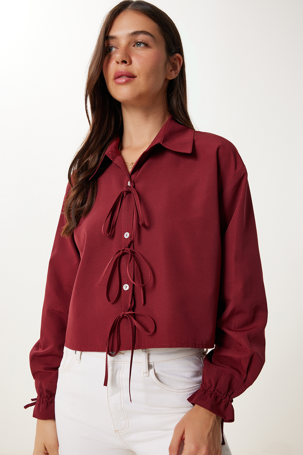 Kadın Siyah Kısa Kollu Bürümcük Crop Gömlek Kadın Siyah Kısa Kollu Bürümcük Crop Gömlek cropgömlek XL