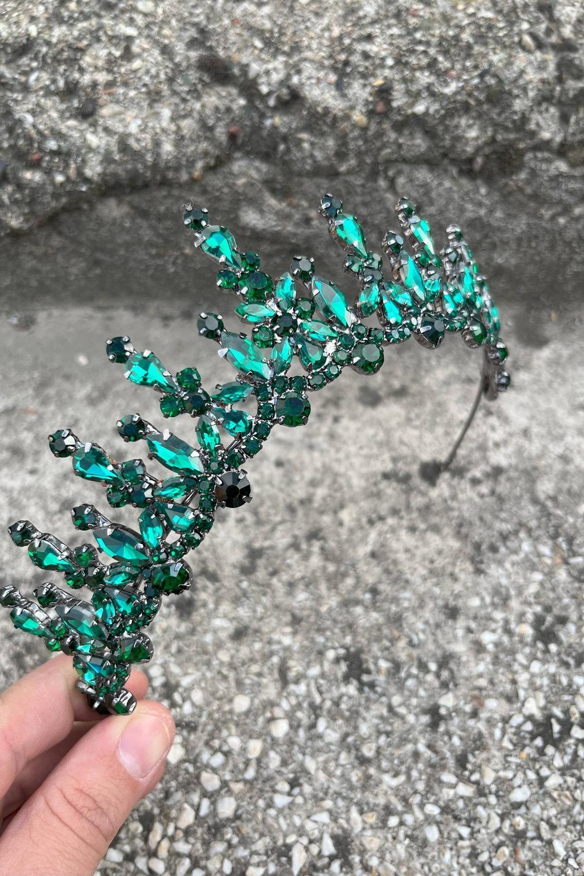 Elvira Yeşil Gelin Kına Tacı Özel Gün Aksesuar Kadın Taç Saç Aksesuarı – Taç, Kristal Taşlı